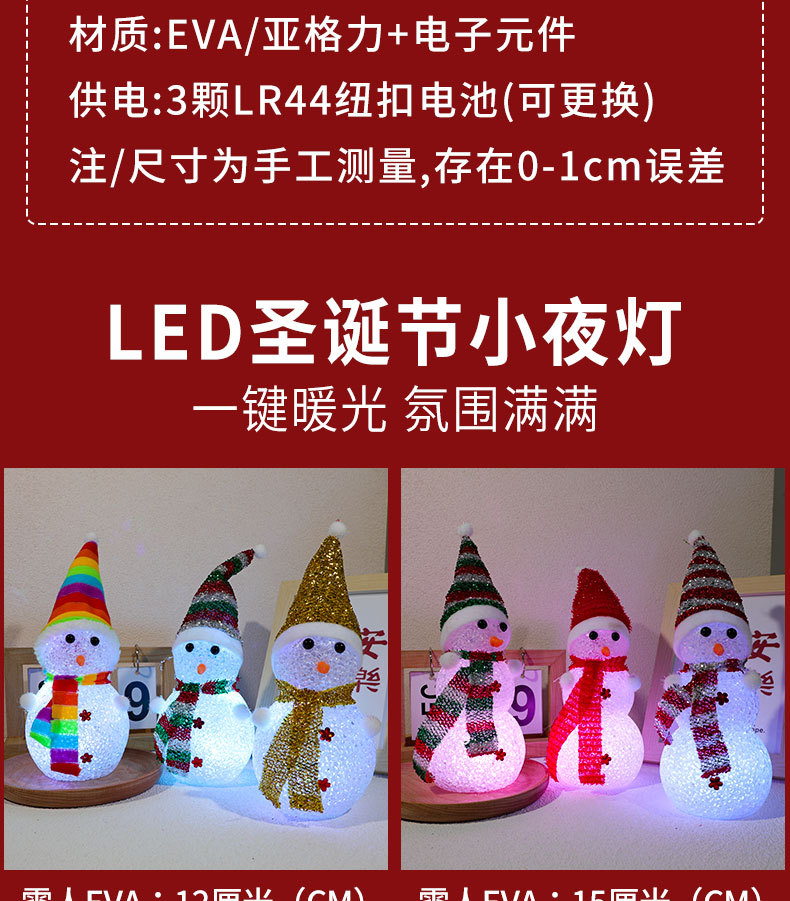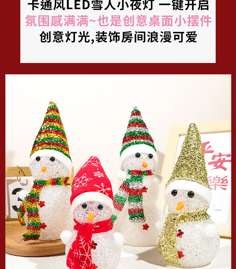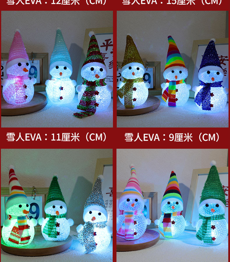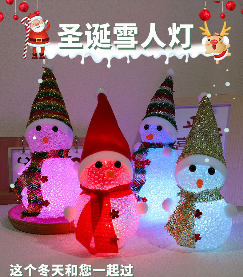 크리스마스 빛나는 눈사람 어린이 선물 크리스마스 이브 플래시 쌀 다채로운 밤 빛 작은 선물 장식 도매스토어 가기