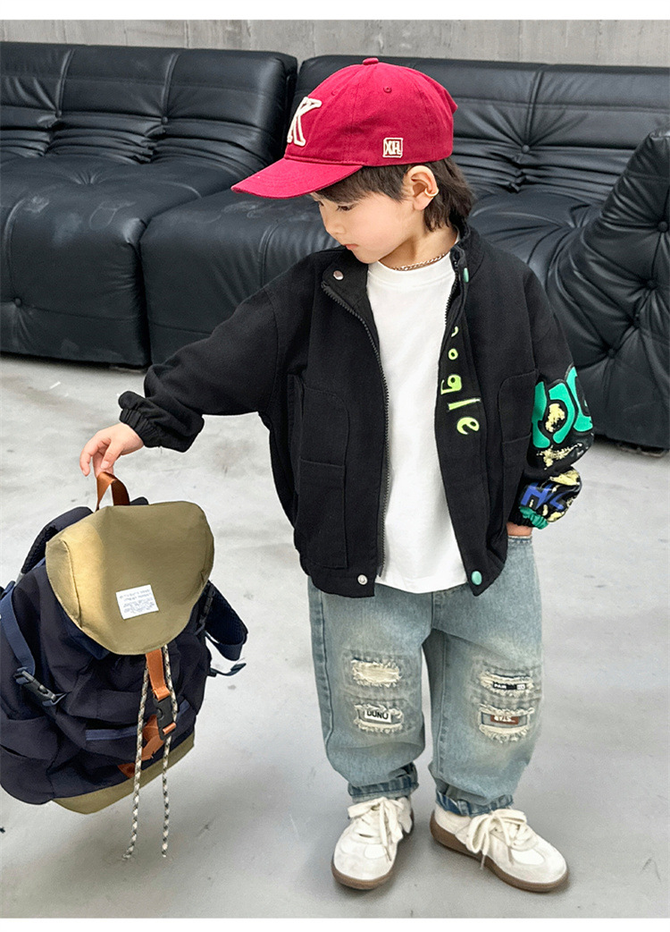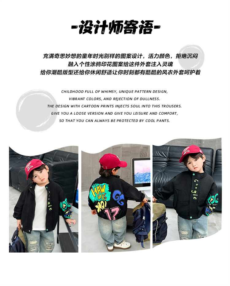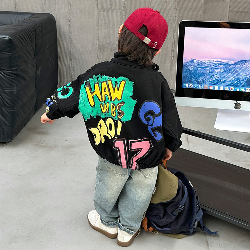 어린이 봄과 가을 낙서 코튼 코트 2024 새로운 소년 멋진 대외 무역 아동복 소년 재킷 루즈스토어 가기