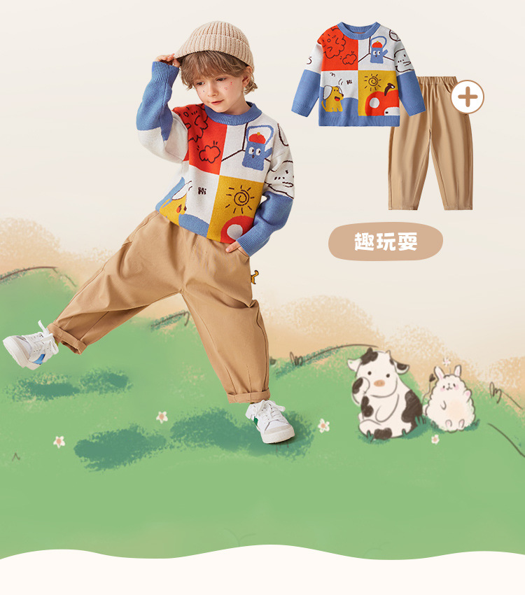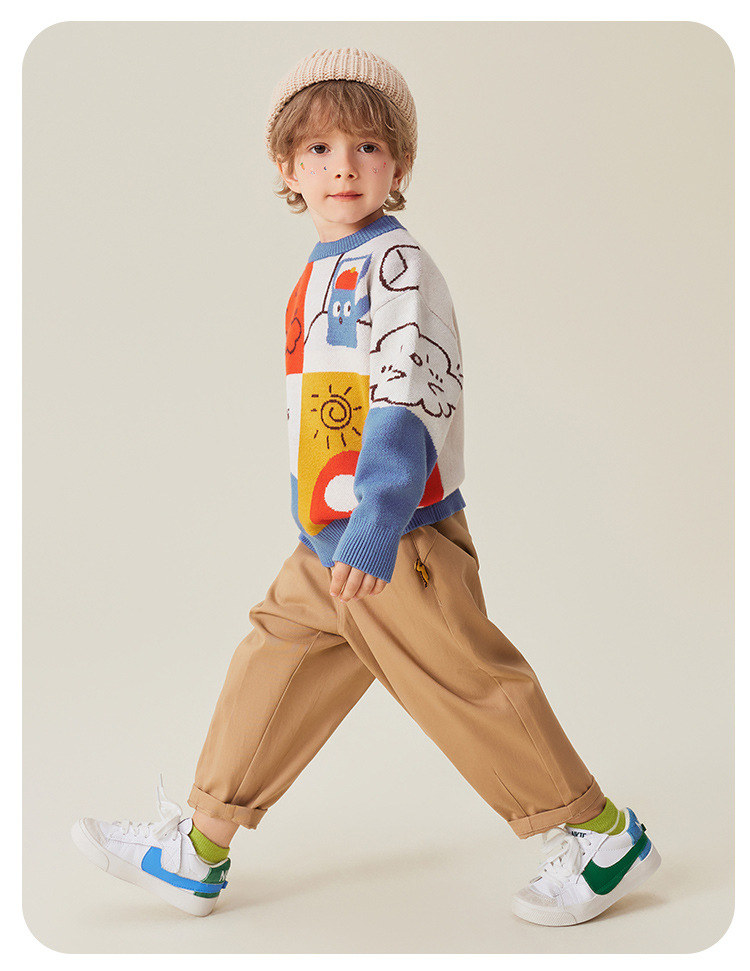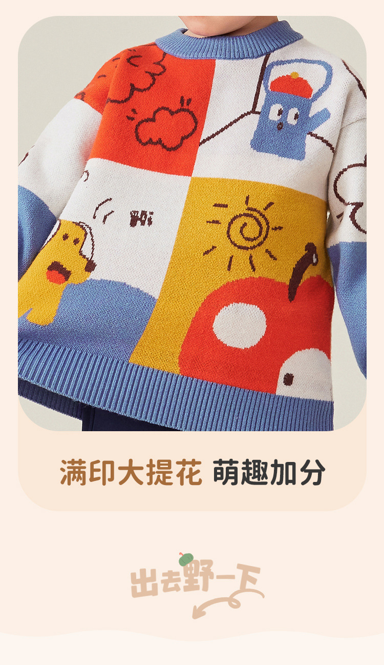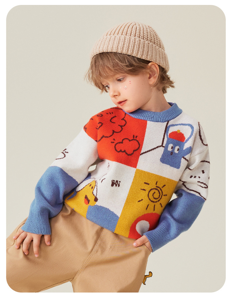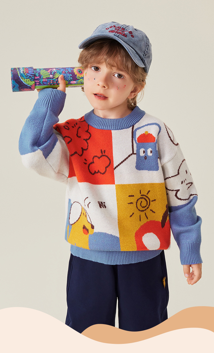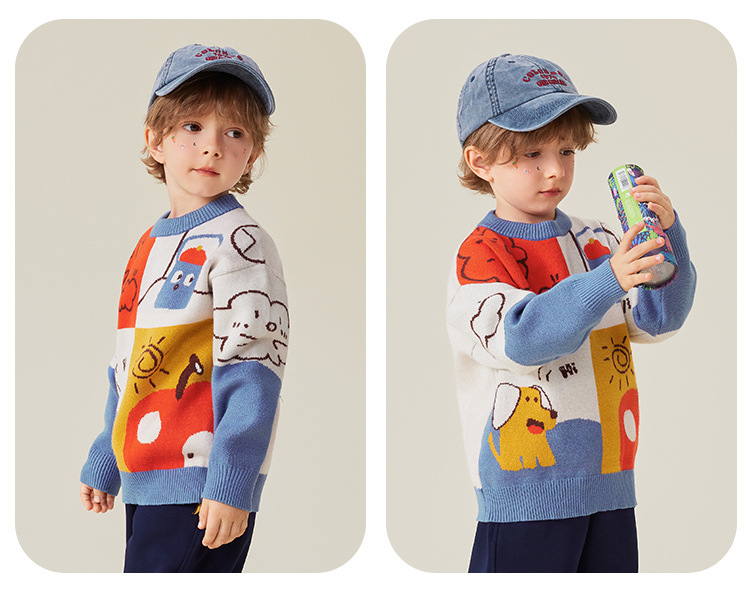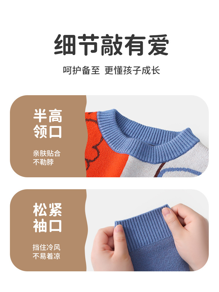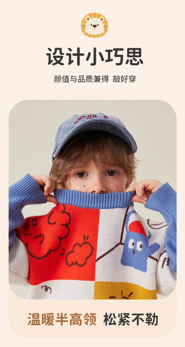 MQDmini 아동복 봄 신상 남아 니트 스웨터 유아용 배색 하프 터틀넥 올오버 프린트 스웨터스토어 가기