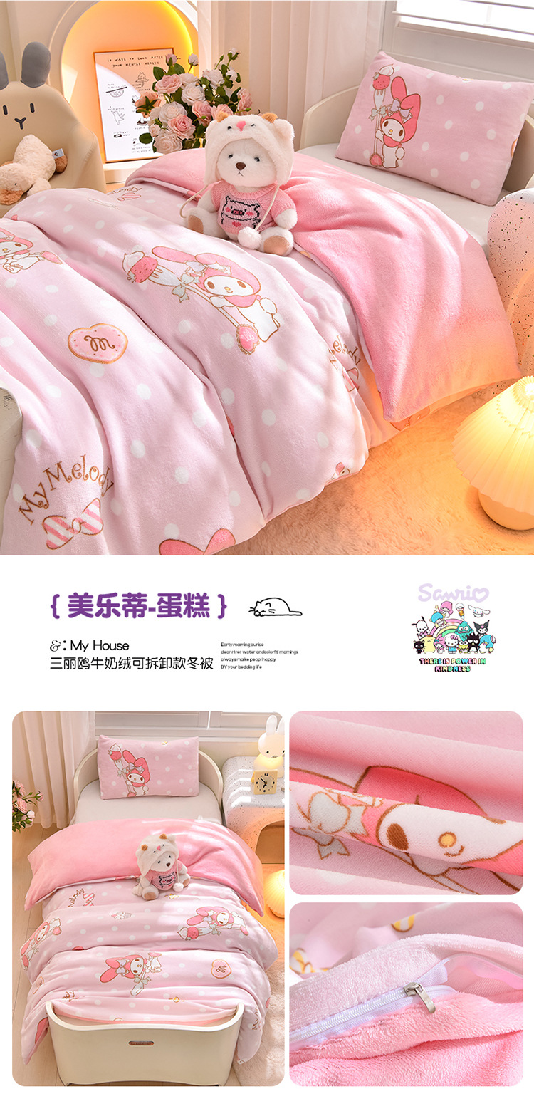 산리오 클래스 밀크 벨벳 이동식 겨울 퀼트 어린이 퀼트 유치원 낮잠 퀼트 커버 스티칭 침대 퀼트 코어