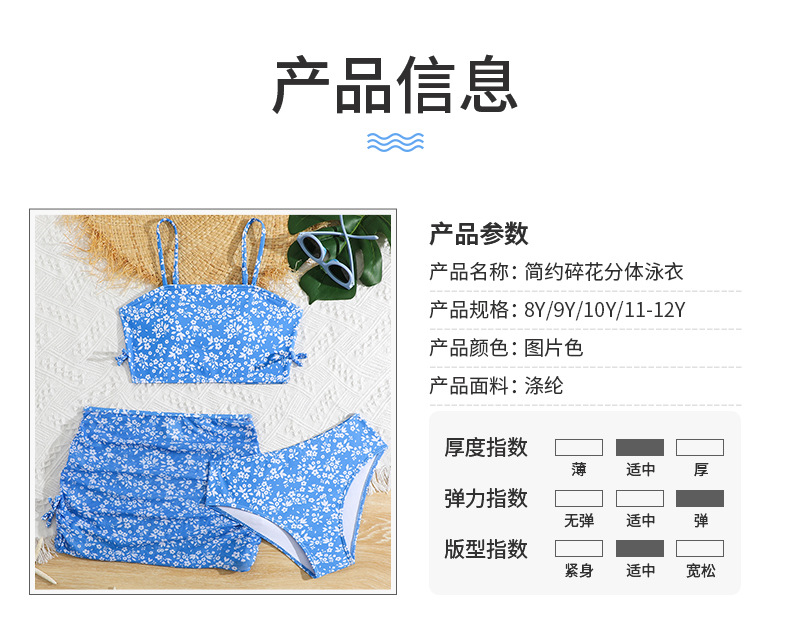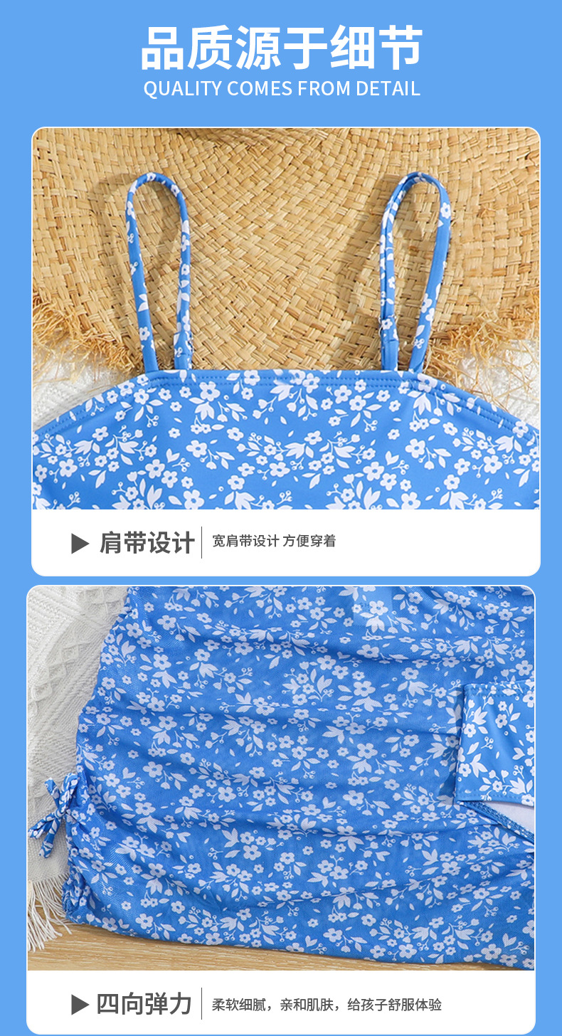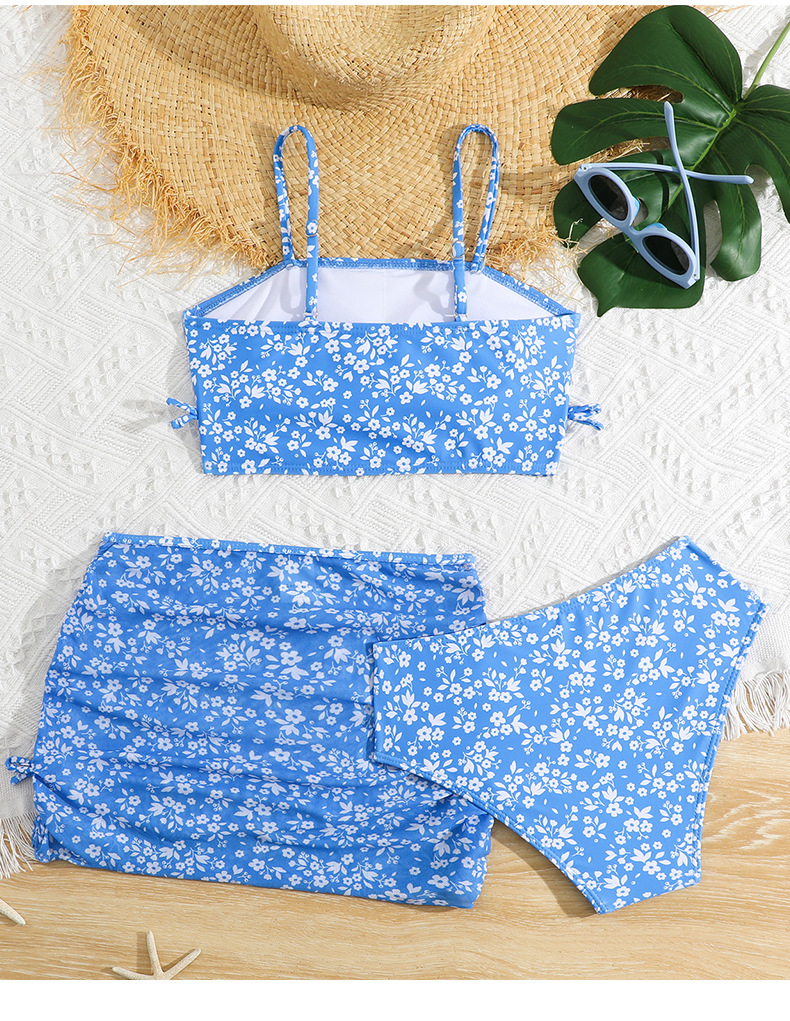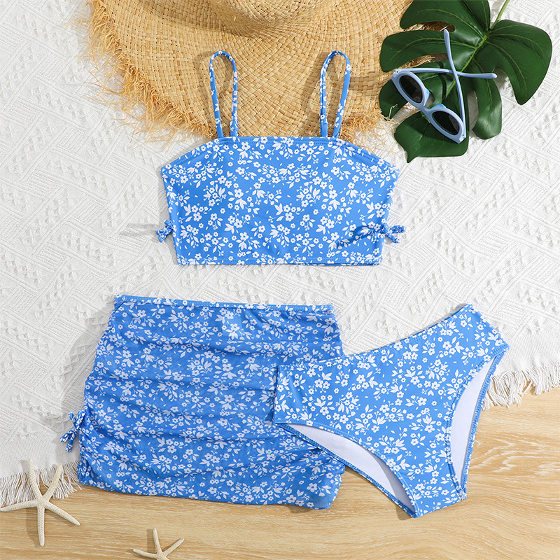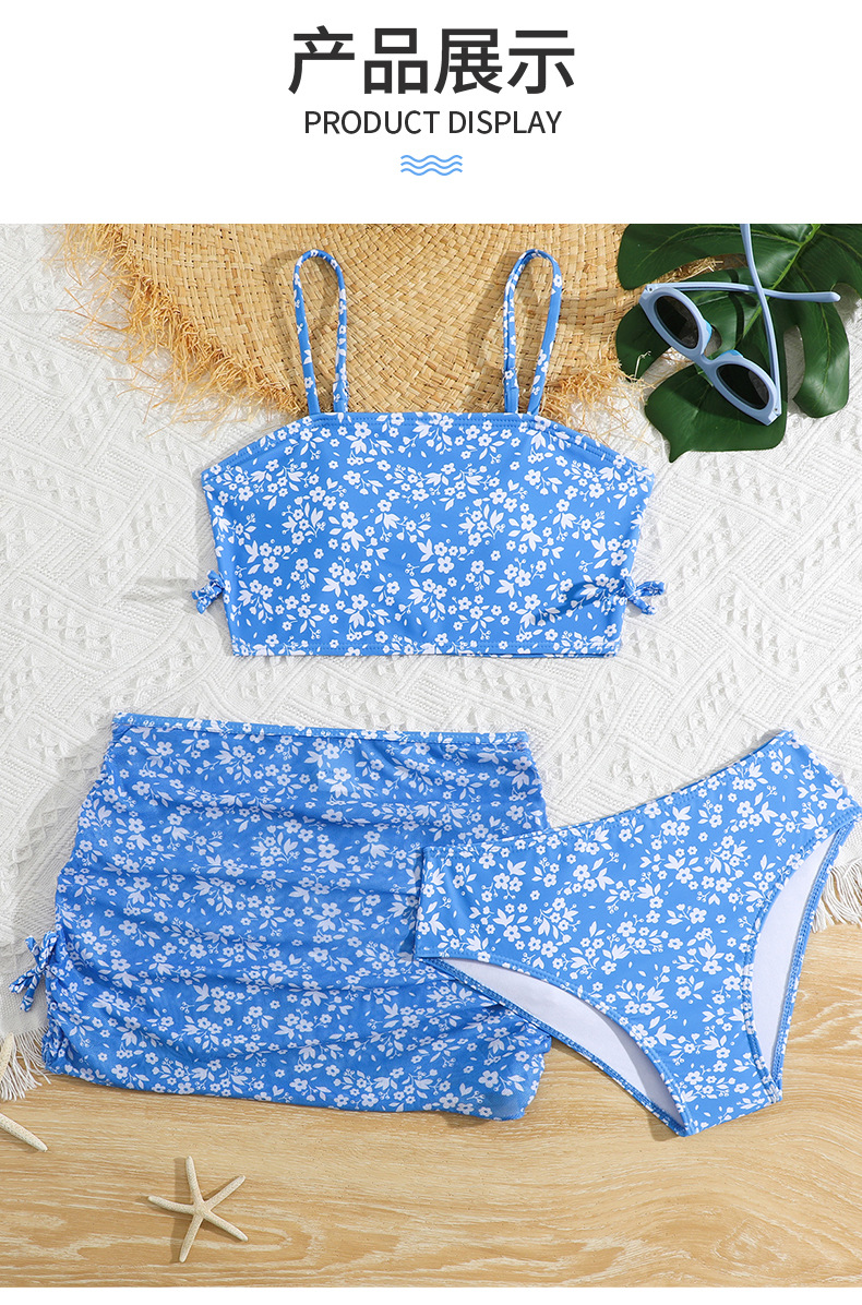 2025년 신상 꽃무늬 3피스 수영복 여아 수영복 여성용 크로스보더 아마존 스플릿 스커트 중대형 아동 수영복