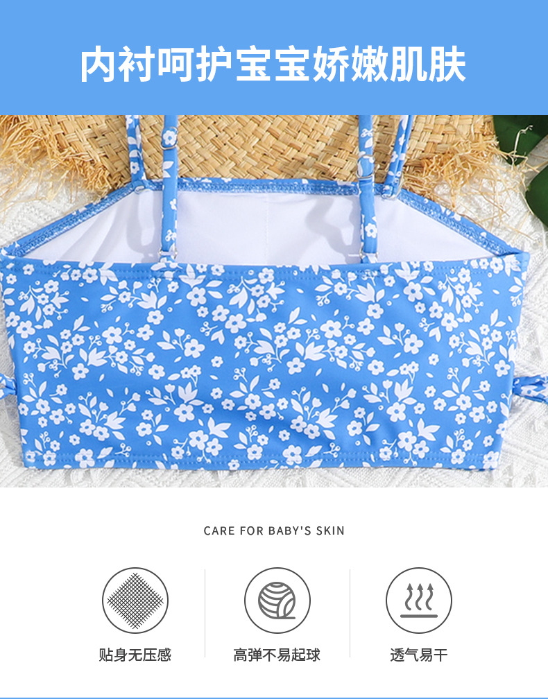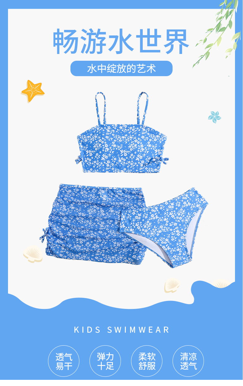 2025년 신상 꽃무늬 3피스 수영복 여아 수영복 여성용 크로스보더 아마존 스플릿 스커트 중대형 아동 수영복스토어 가기