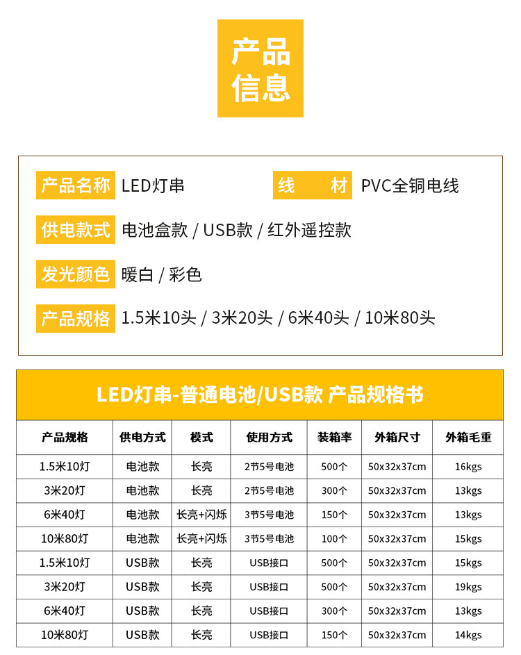 • 6.4m 램프 USB 모델은 항상 켜져 있습니다.