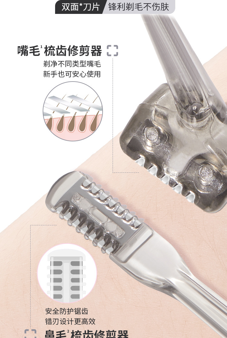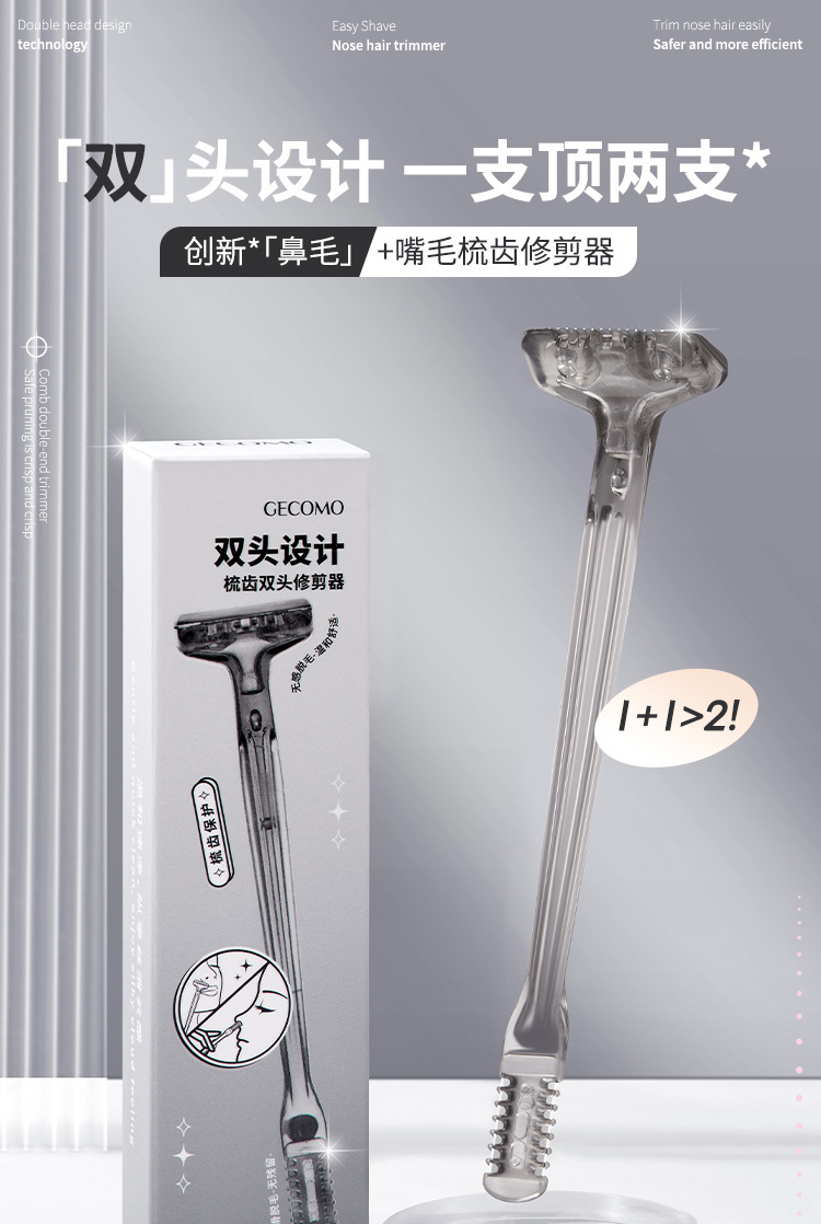 GECOMO 빗 이빨 더블 헤드 트리머 양면 코 헤어 면도기 청소 입 헤어 트리머 면도 뷰티 메이크업 도구