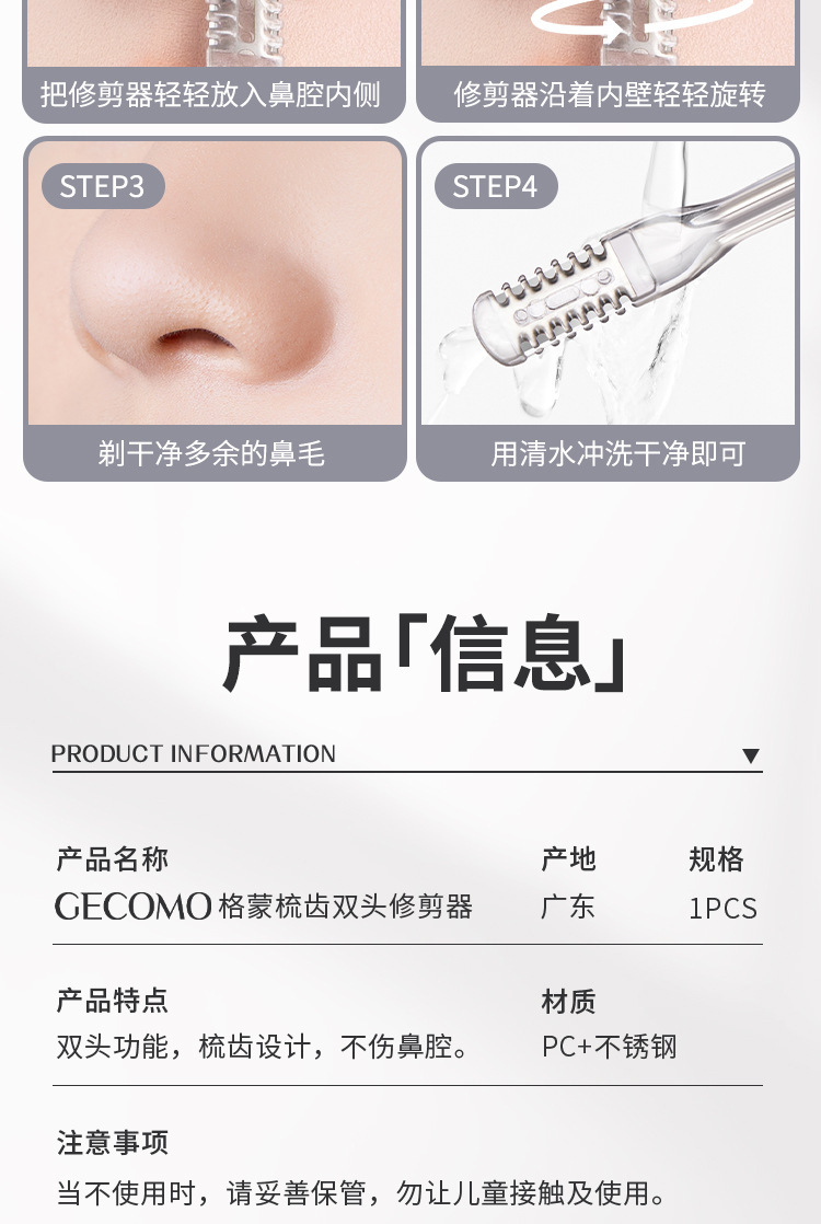 GECOMO 빗 이빨 더블 헤드 트리머 양면 코 헤어 면도기 청소 입 헤어 트리머 면도 뷰티 메이크업 도구스토어 가기