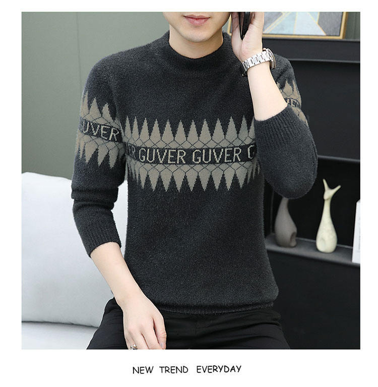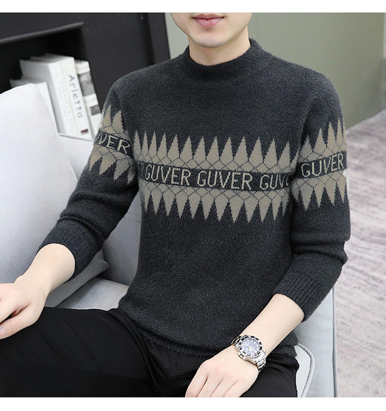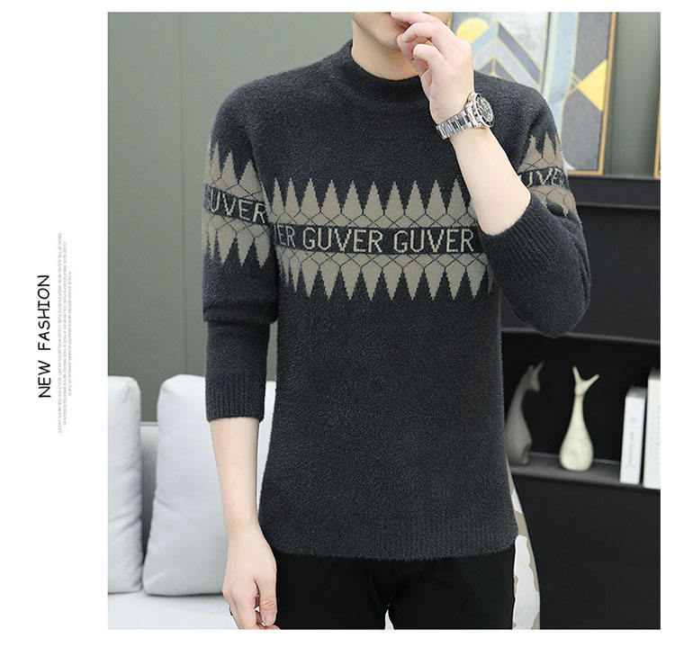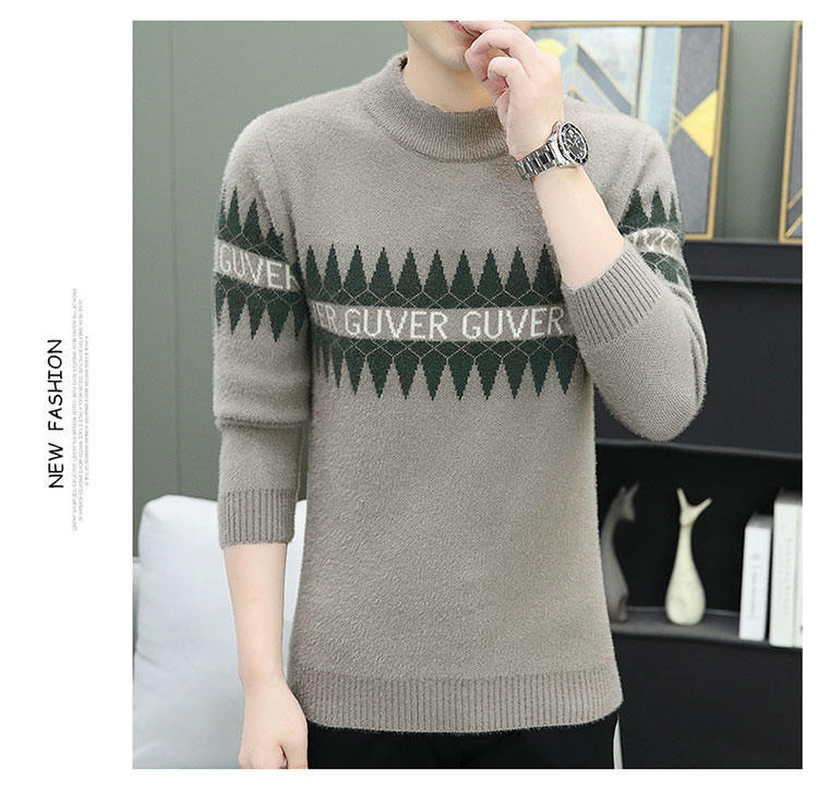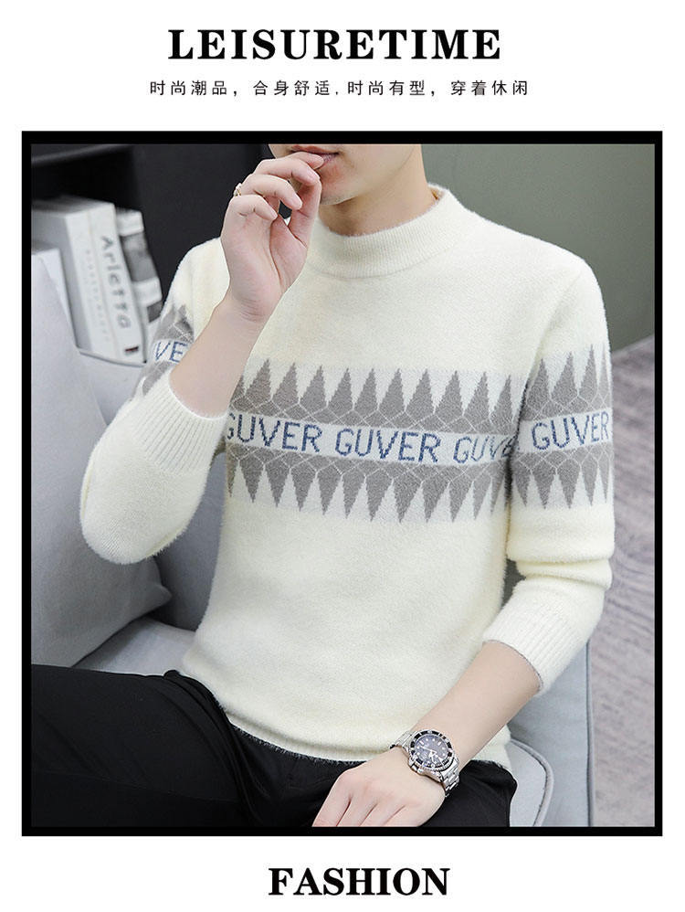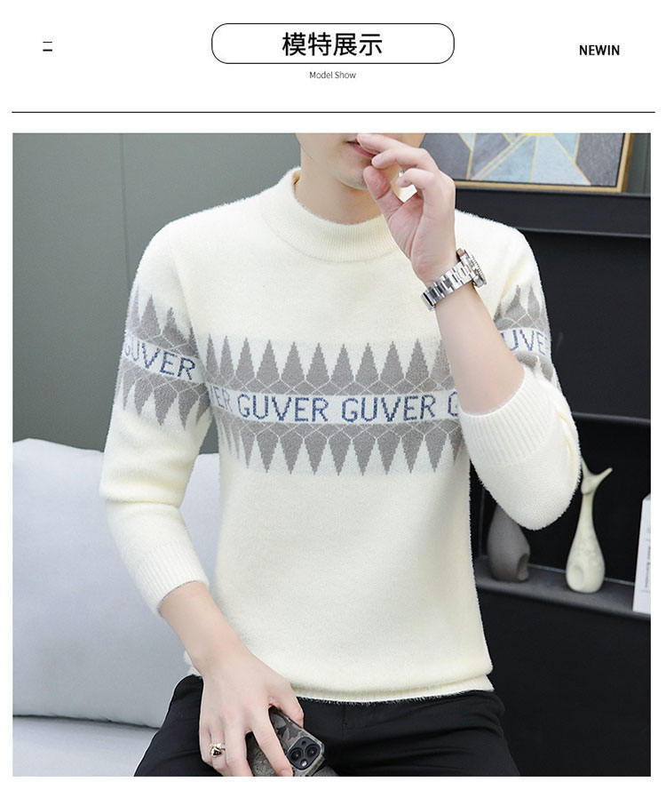 국경 간 대외 무역 세대 AliExpress 남성 니트 2024 새로운 세미 하이 칼라 크리스탈 밍크 스웨터 남성용 스웨터스토어 가기
