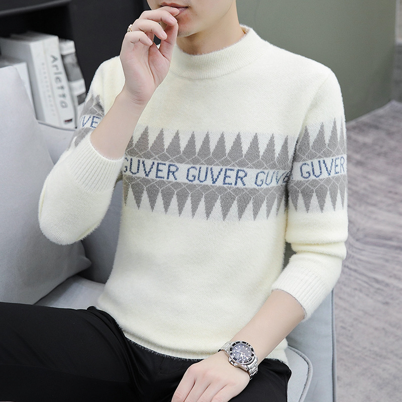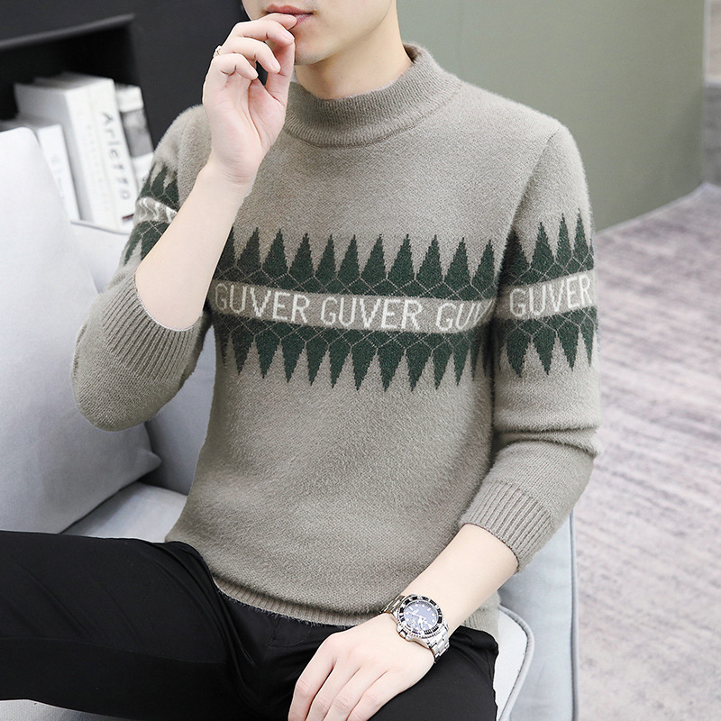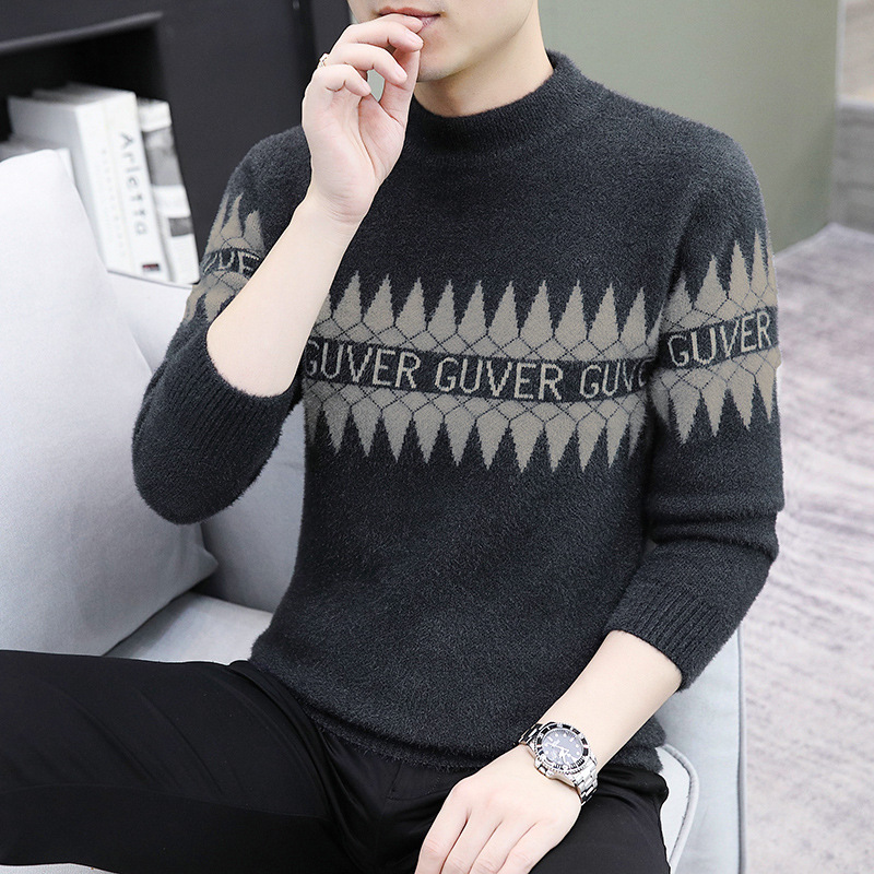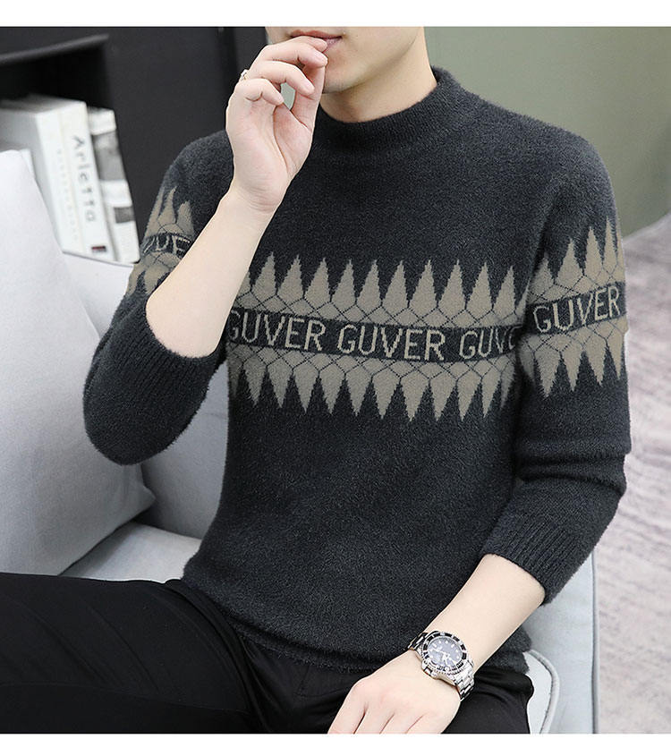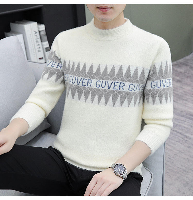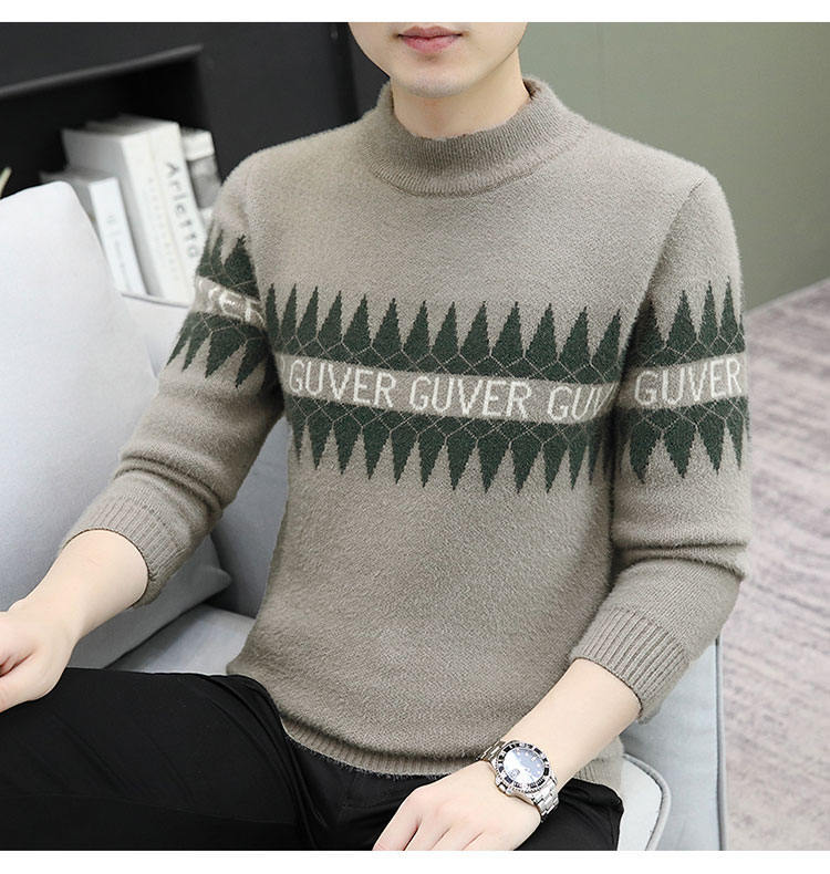 국경 간 대외 무역 세대 AliExpress 남성 니트 2024 새로운 세미 하이 칼라 크리스탈 밍크 스웨터 남성용 스웨터스토어 가기