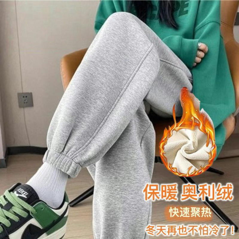 스포츠 바지 여자 느슨한 올매치 새로운 도착 넥타이 다리 봄과 가을 할란 슬리밍 작은 겨울 기모 캐주얼 바지스토어 가기