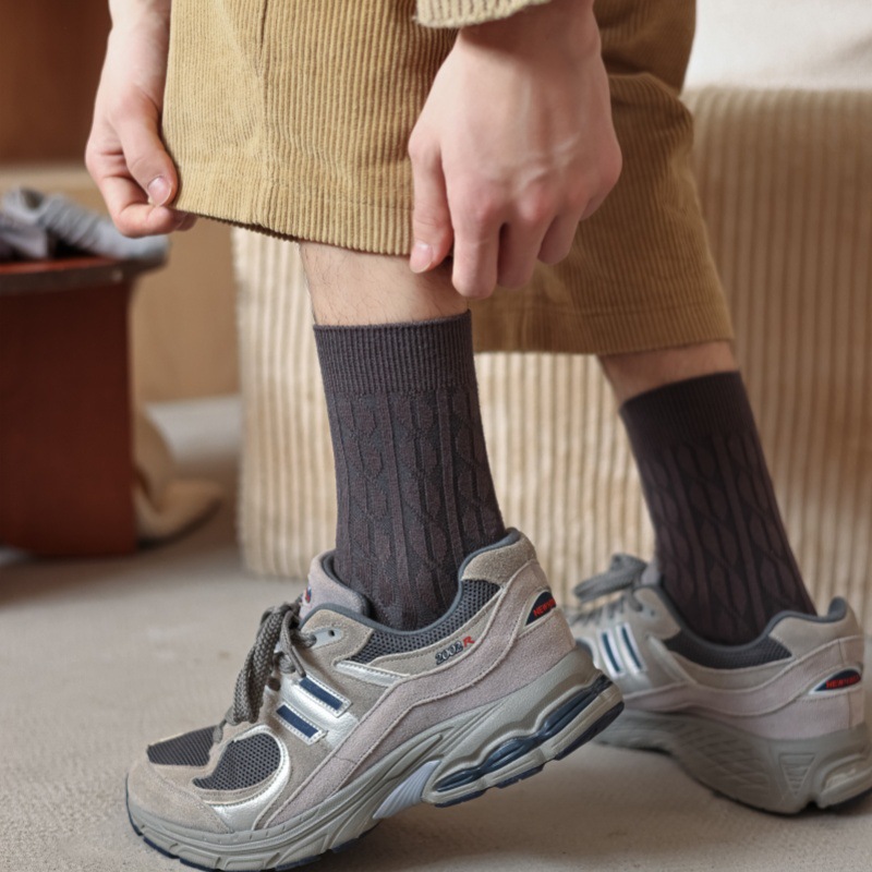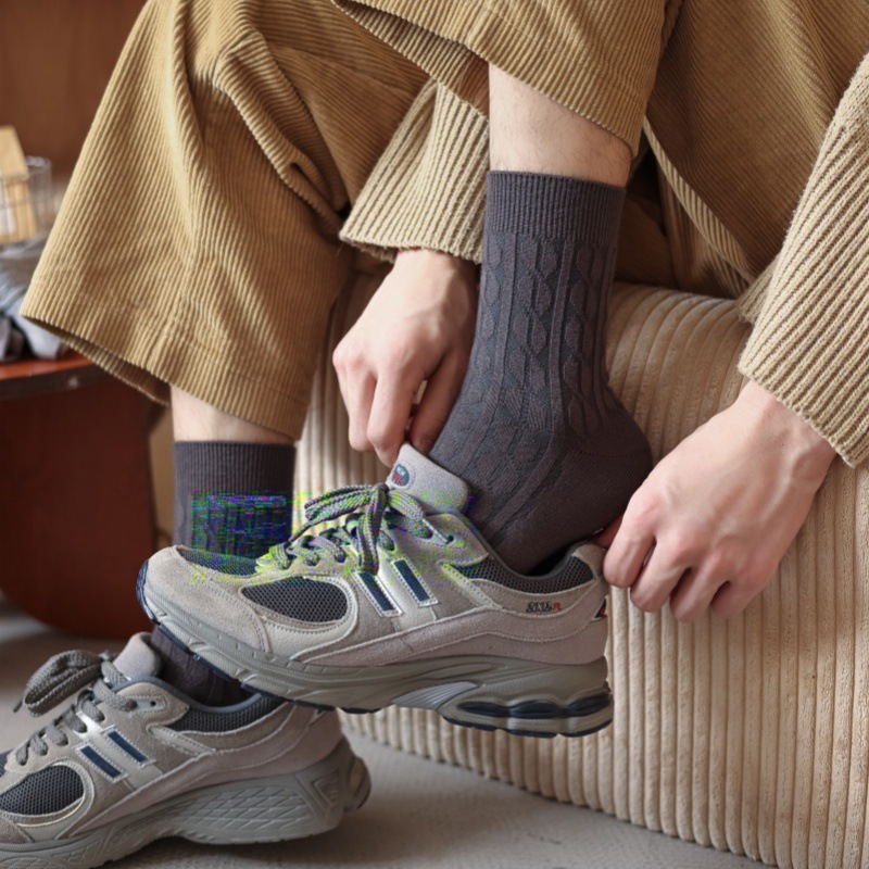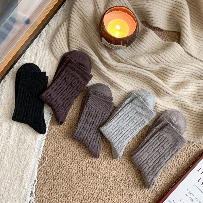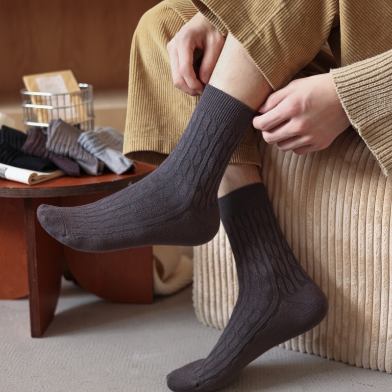남성용 꼬임 모양 모조 캐시미어 양말 가을 겨울 두꺼운 보온 단색 비즈니스 남성 중간 길이 양말 다용도 편안한 남성 양말스토어 가기