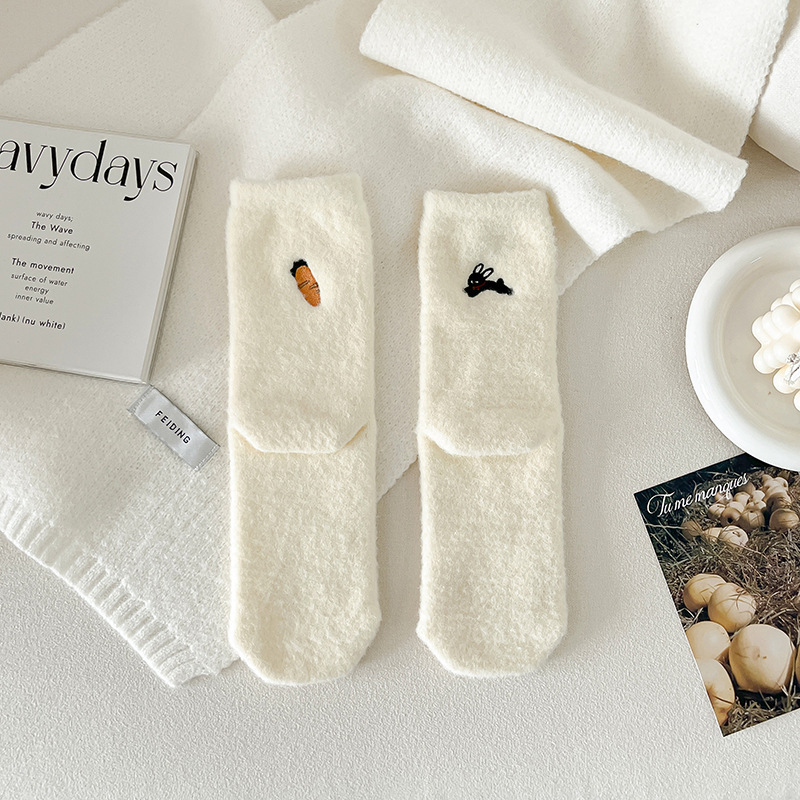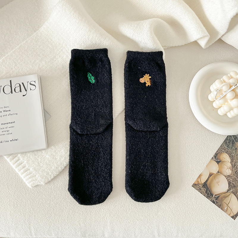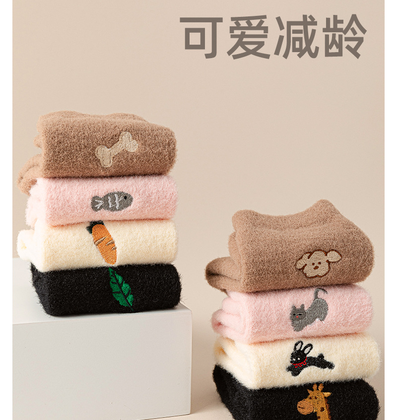 여성용 겨울 두꺼운 보온 중목 양말 AB 스타일 호주산 양털 자수 여성 양말 롱 양말 플러스 벨벳 양말스토어 가기