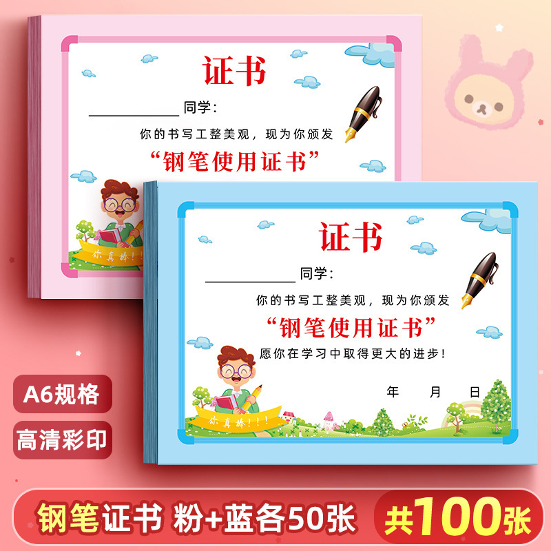 • A6 만년필 인증서 [블루 50매 + 핑크 50매]