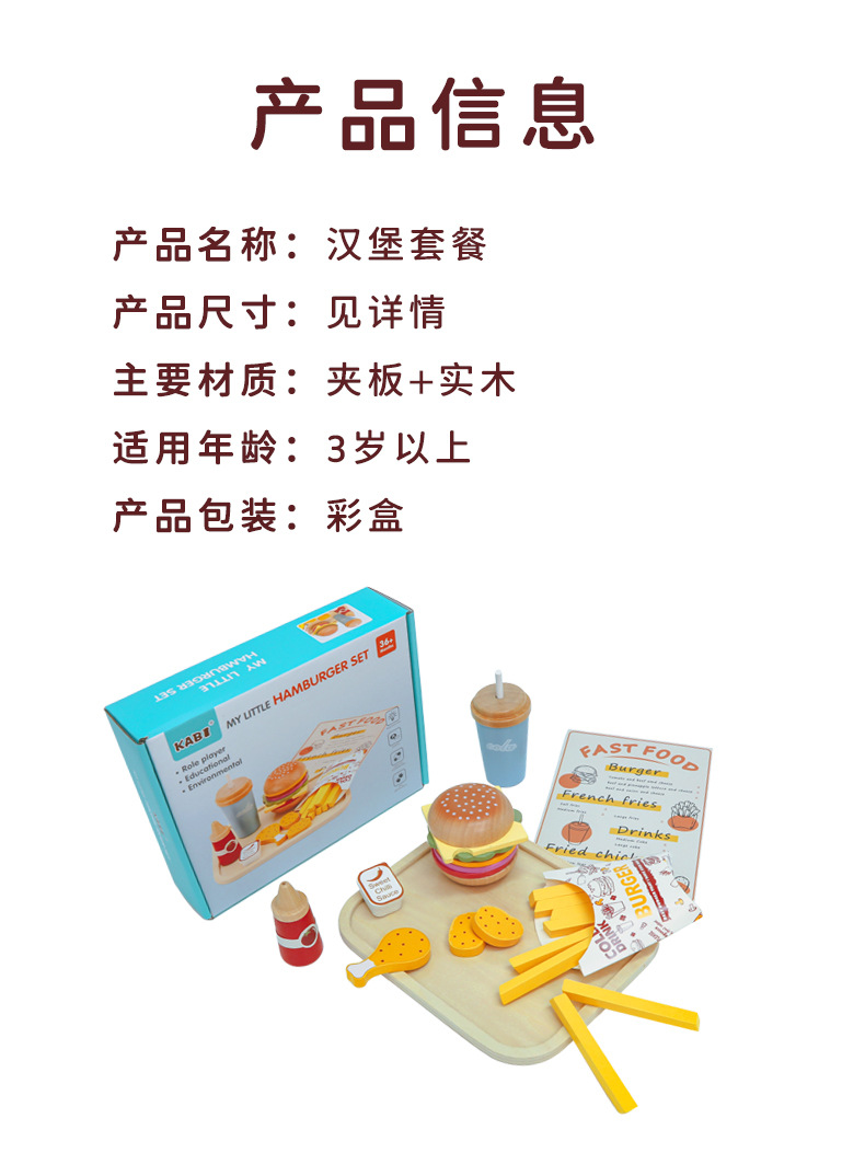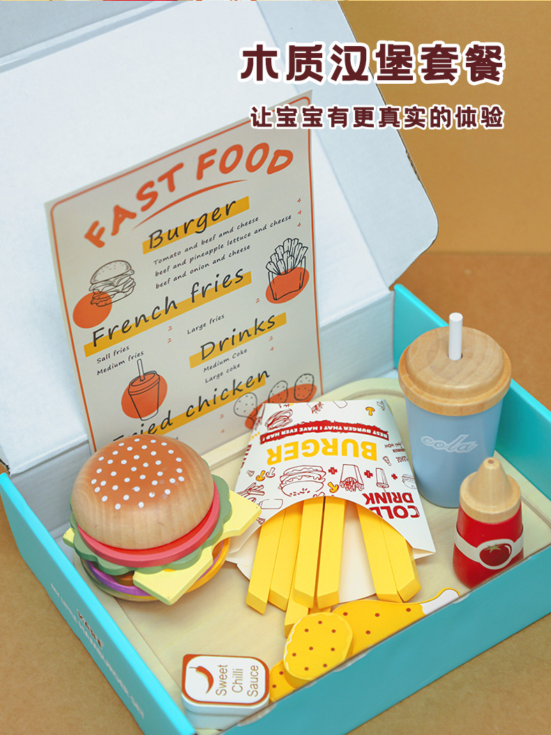 국경 간 어린이 놀이 홈 퍼즐 햄버거 튀김 나무 시뮬레이션 장난감 샌드위치 주방 나무 음식 놀이 도매스토어 가기
