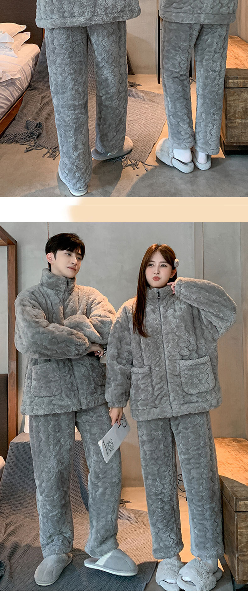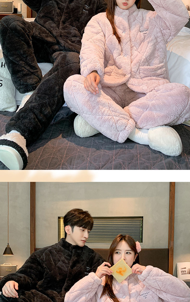커플 잠옷 여성의 겨울 3 층 퀼트 산호 양털 기모 두꺼운 따뜻한 남자 홈 옷 면 재킷 세트스토어 가기