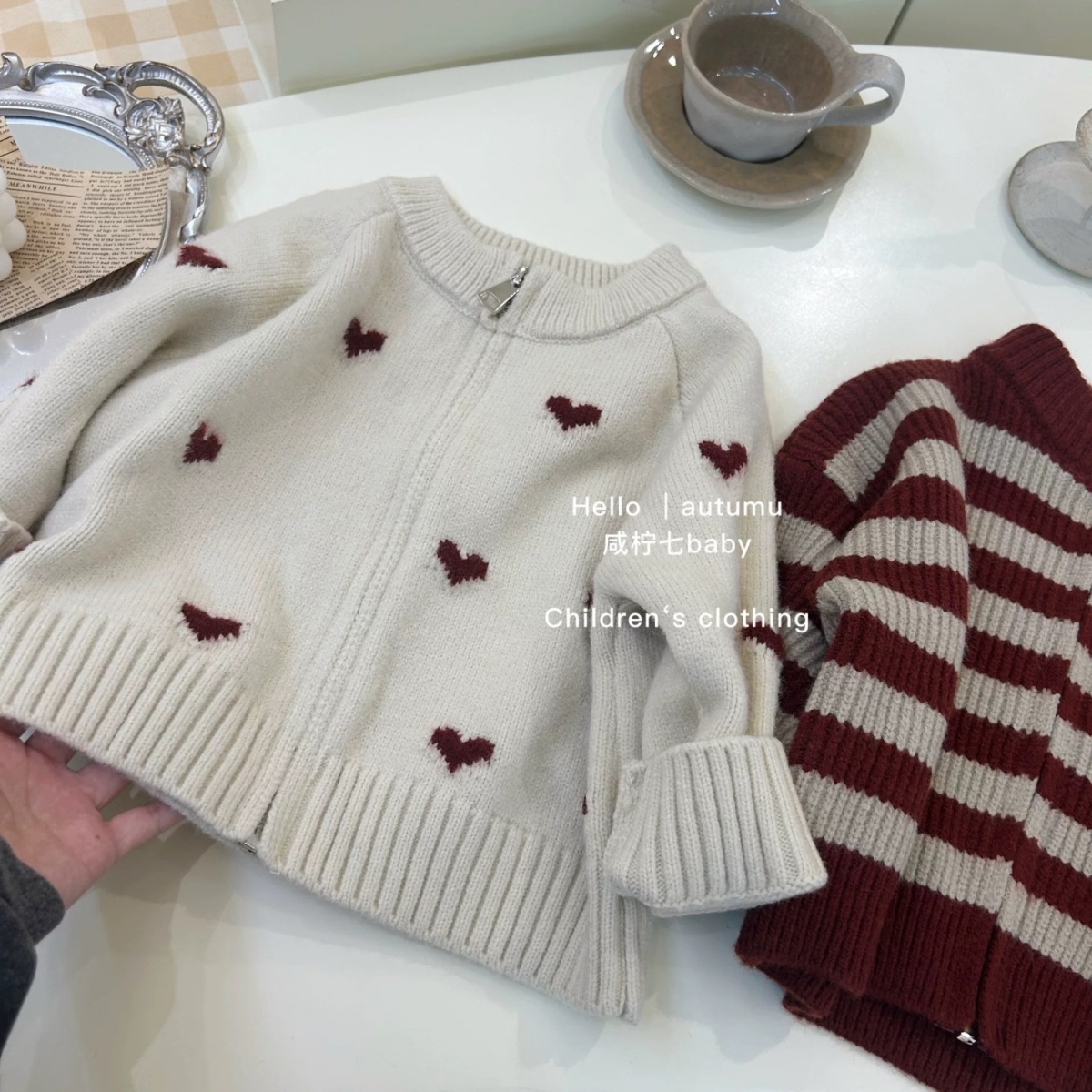2024 가을과 겨울 새로운 외국 스타일의 달콤한 소녀 사랑 니트 아동복 한국 지퍼 스웨터 카디건 코트스토어 가기