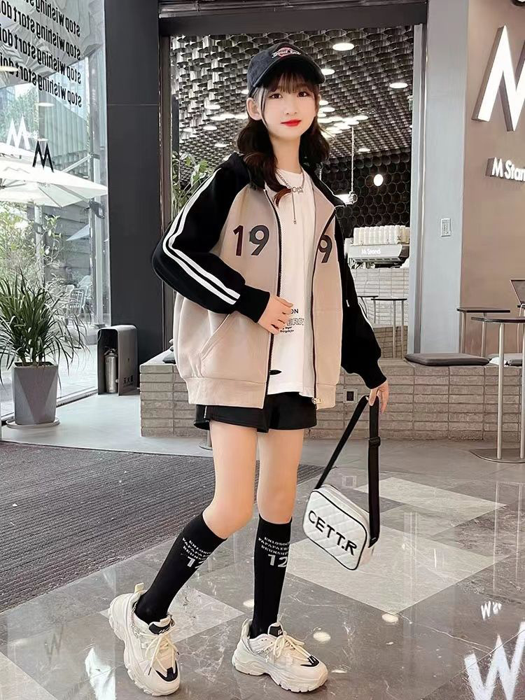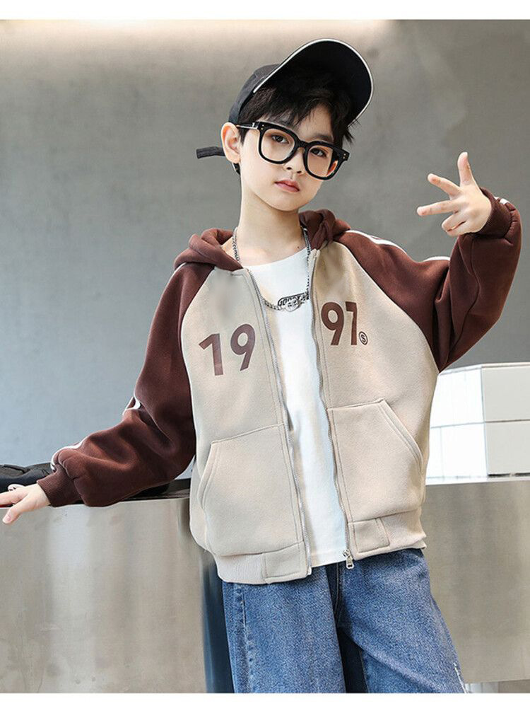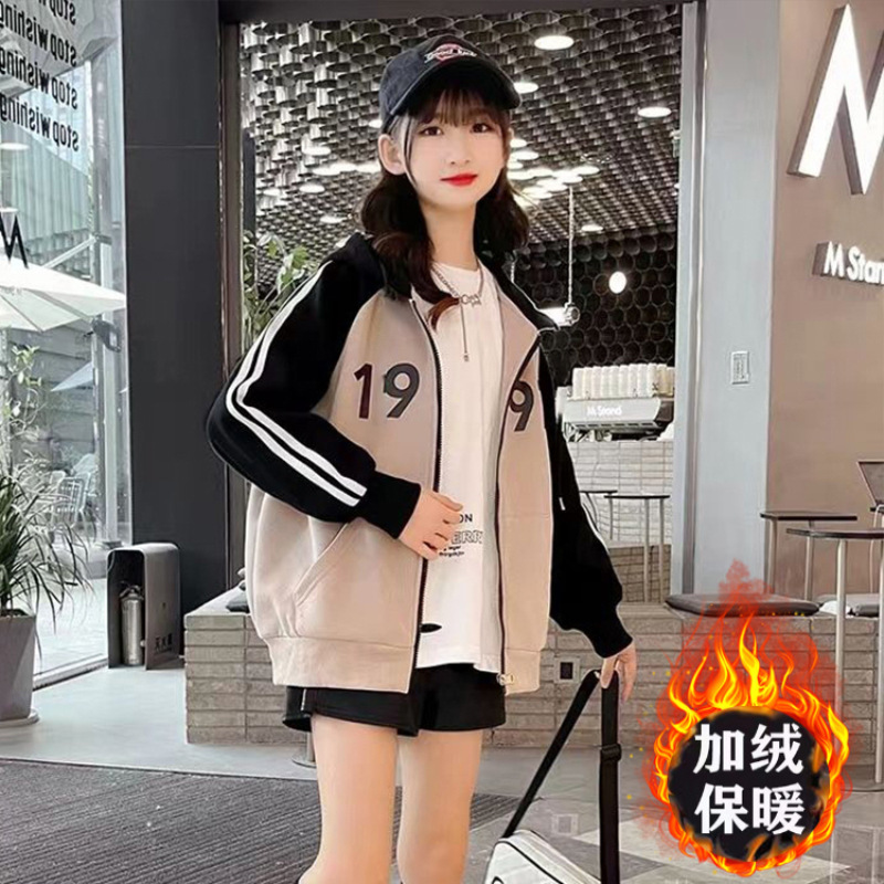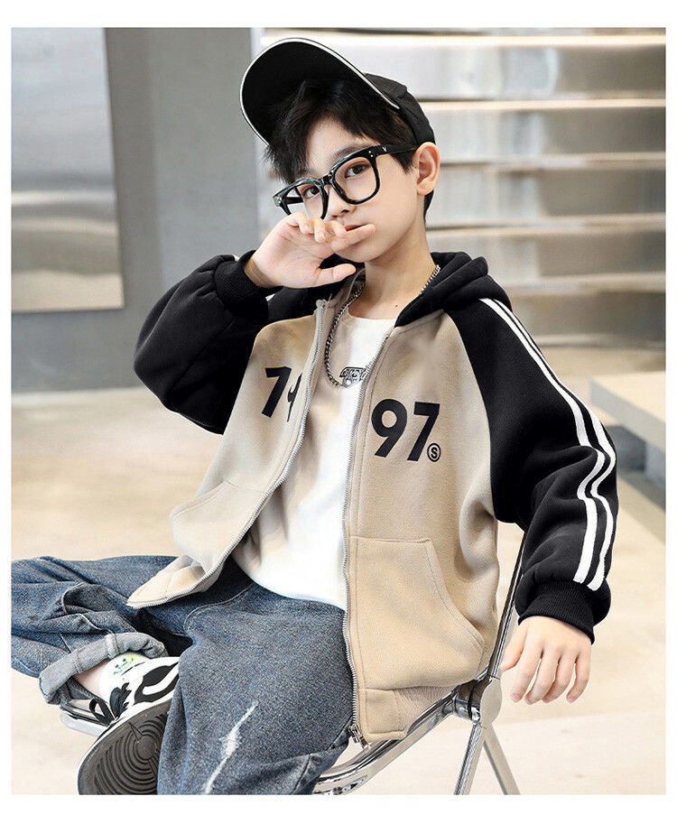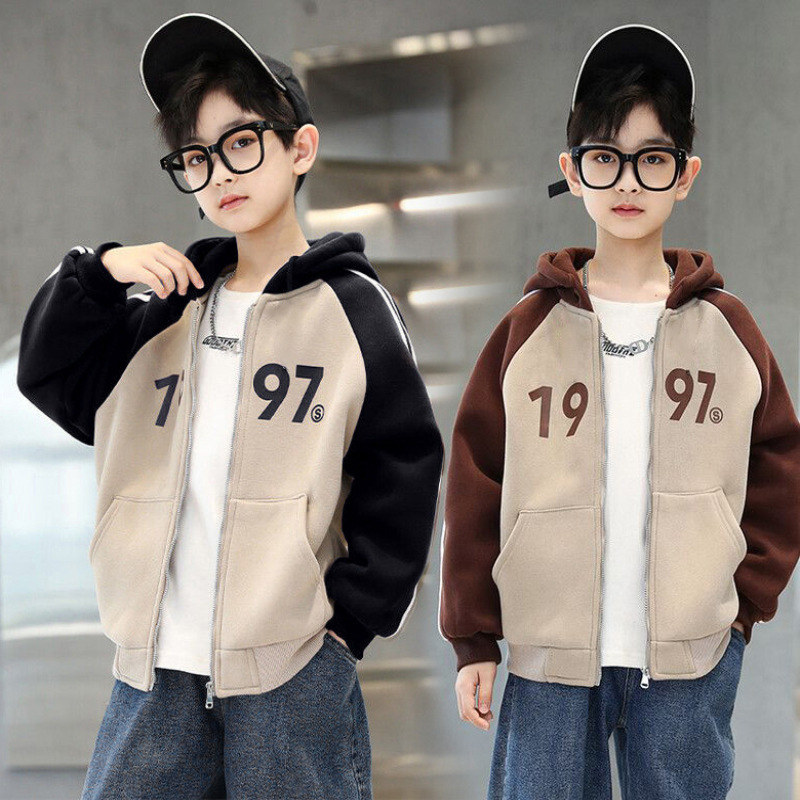 가을과 겨울 소년과 소녀 서양식 지퍼 후드 어린이 의류 빅 키즈 패션 캐주얼 기모 따뜻한 야구 코트