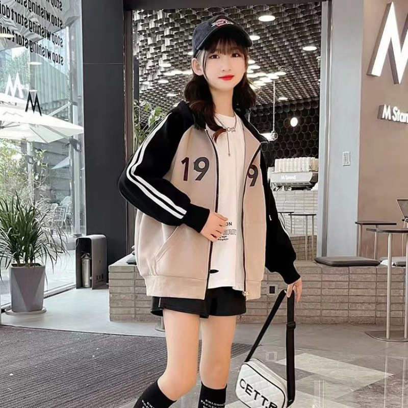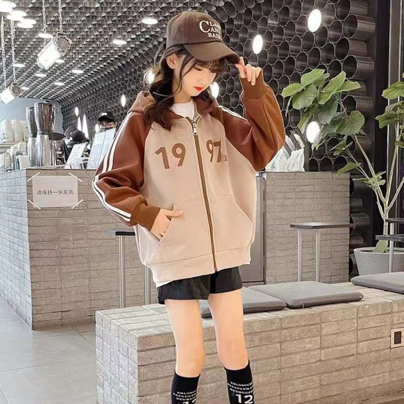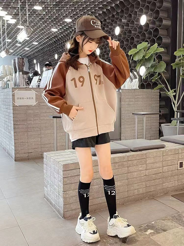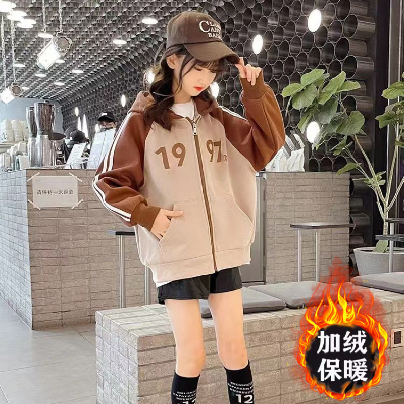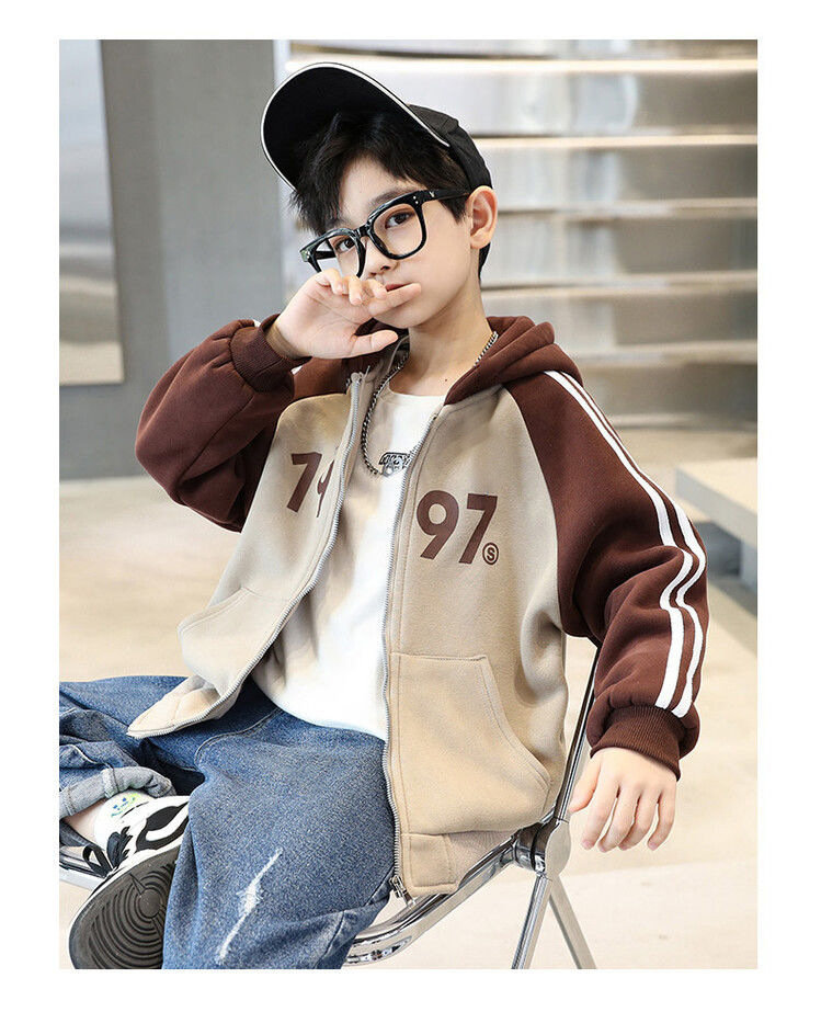 가을과 겨울 소년과 소녀 서양식 지퍼 후드 어린이 의류 빅 키즈 패션 캐주얼 기모 따뜻한 야구 코트스토어 가기