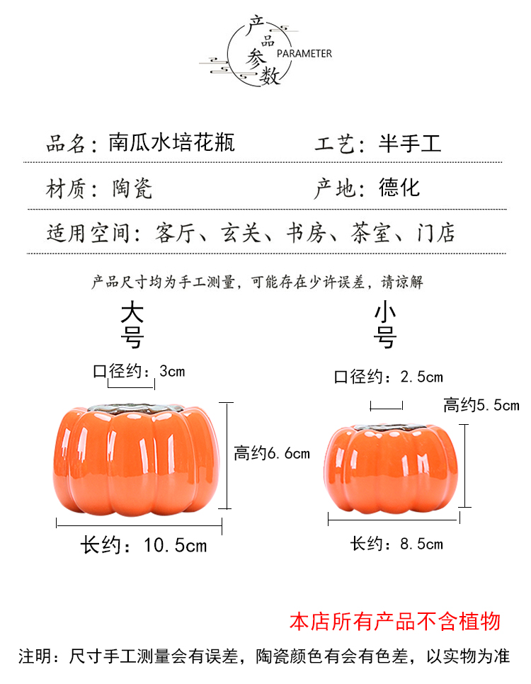 • 작은 주황색 호박 수경 꽃병 한 쌍(식물 제외)