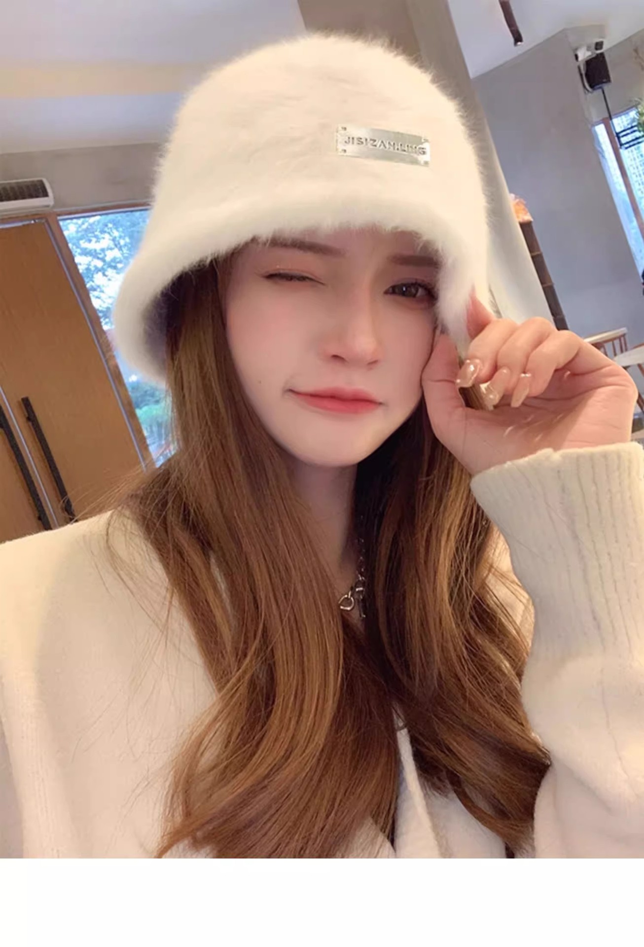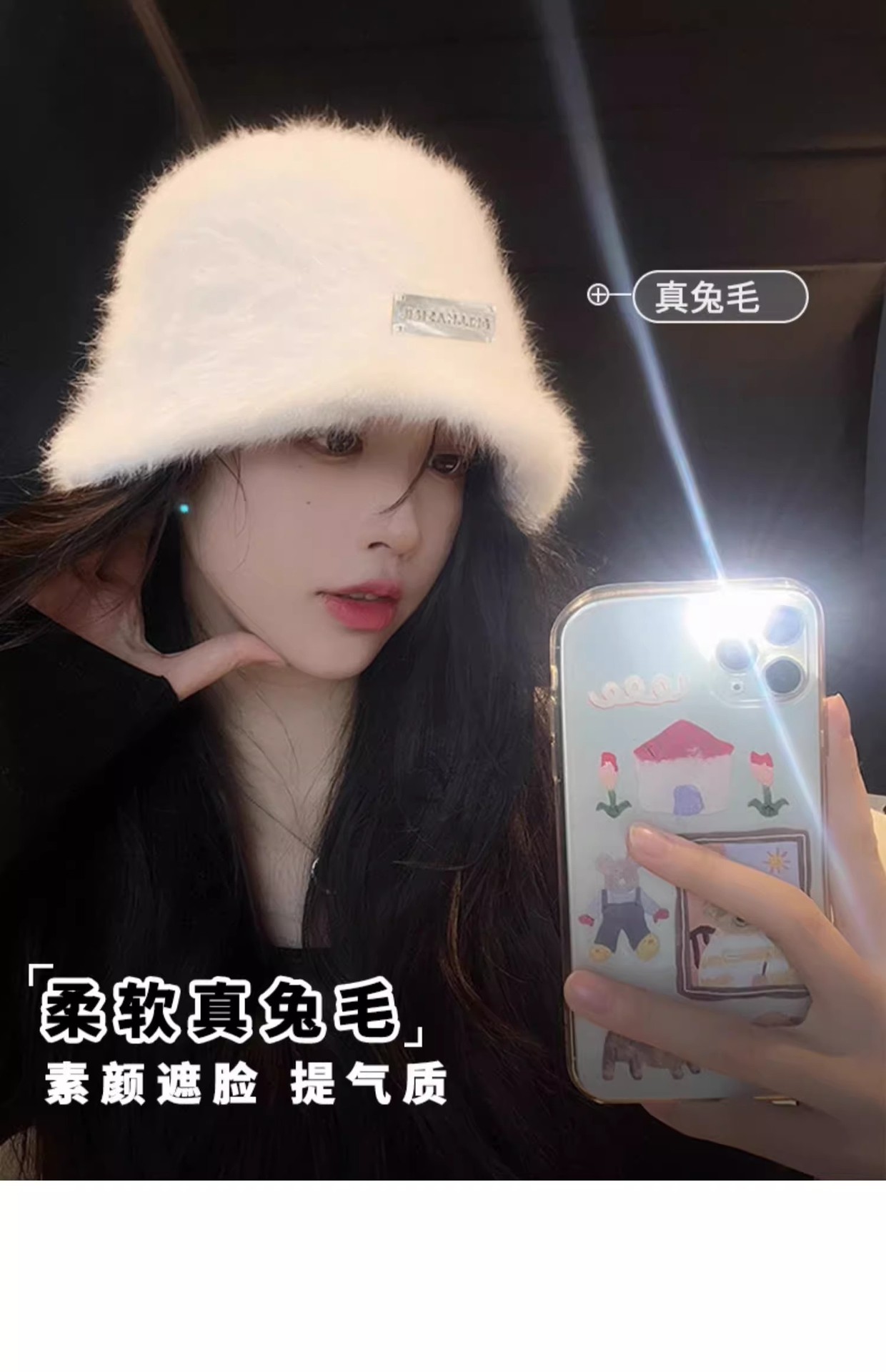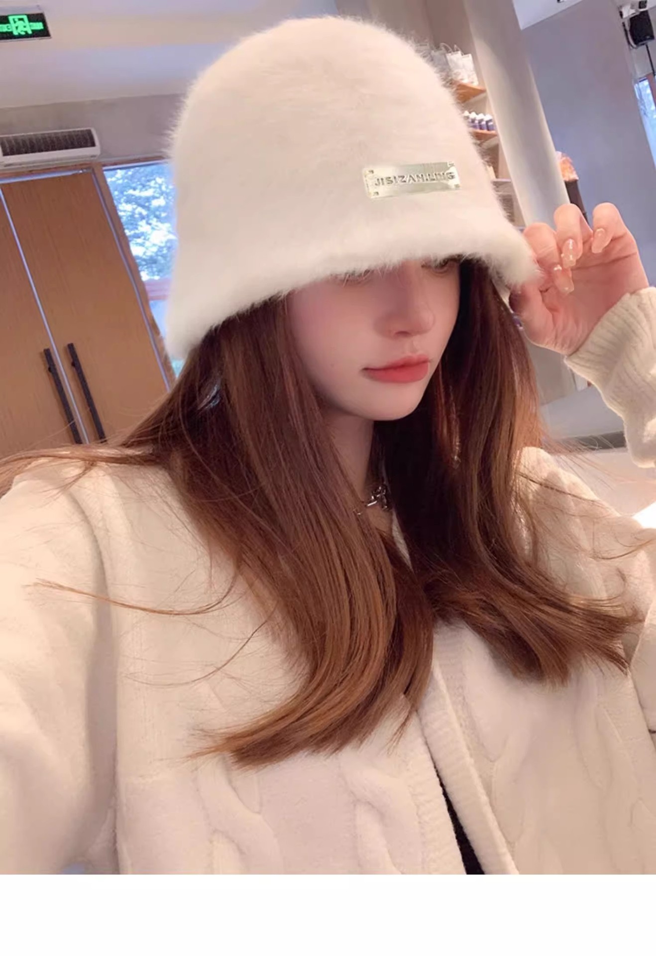얼굴 작은 토끼 모피 어부 모자 여성의 가을 및 겨울 모든 경기 따뜻한 큰 머리 분지 모자 흰색 일반 봉제 양동이 모자스토어 가기