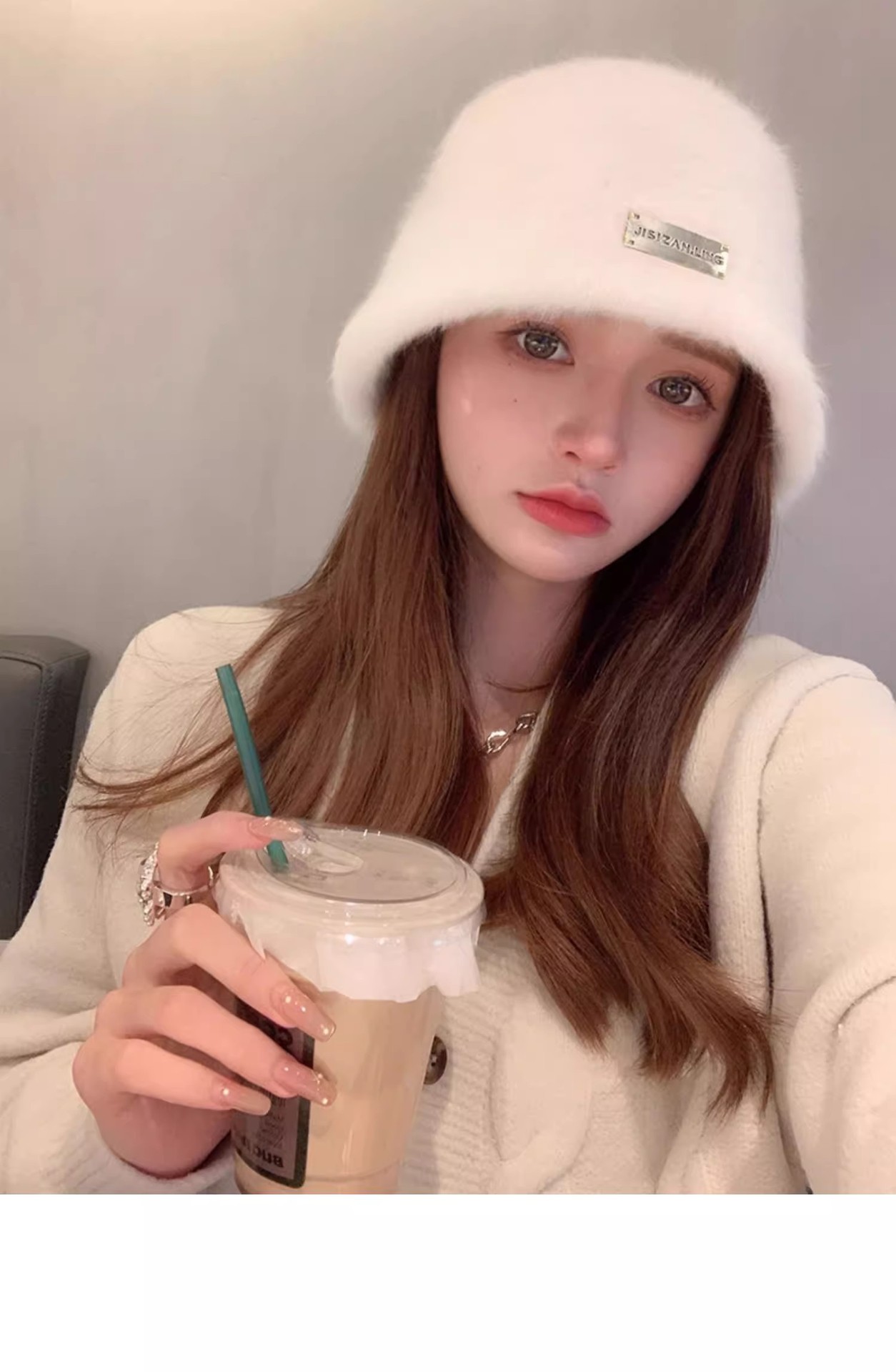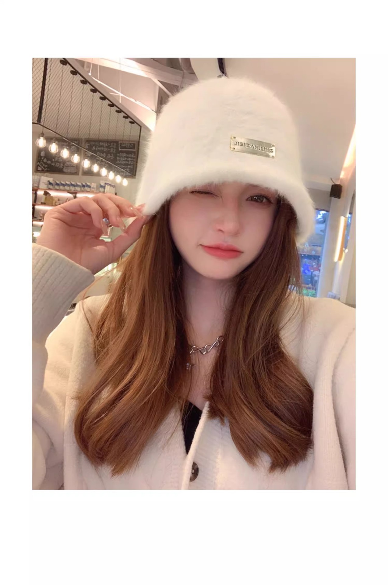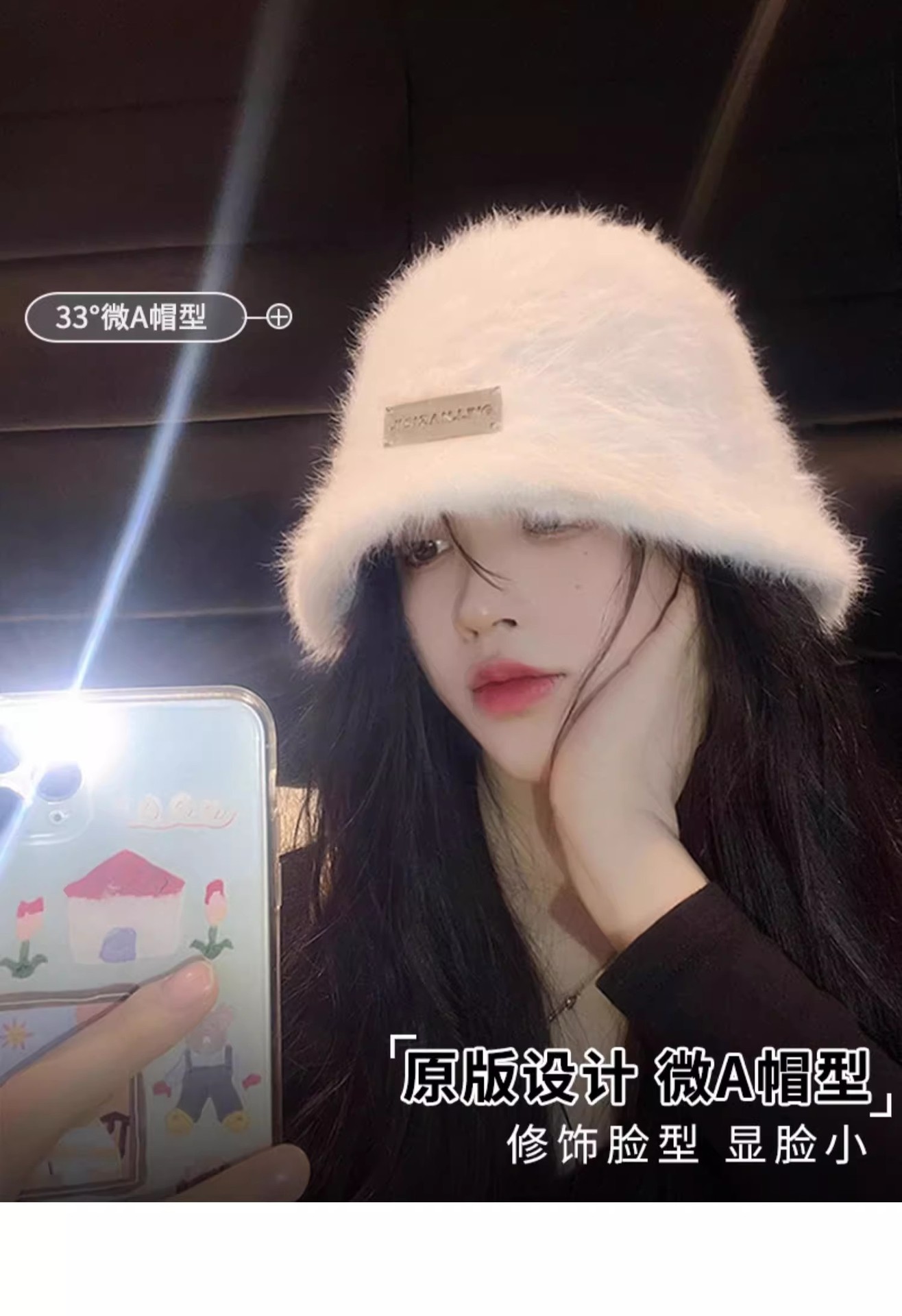 얼굴 작은 토끼 모피 어부 모자 여성의 가을 및 겨울 모든 경기 따뜻한 큰 머리 분지 모자 흰색 일반 봉제 양동이 모자스토어 가기