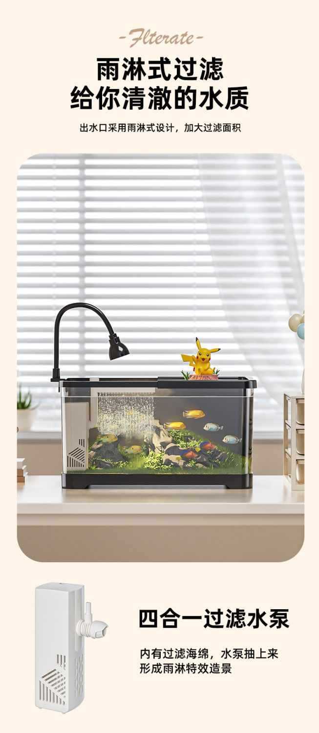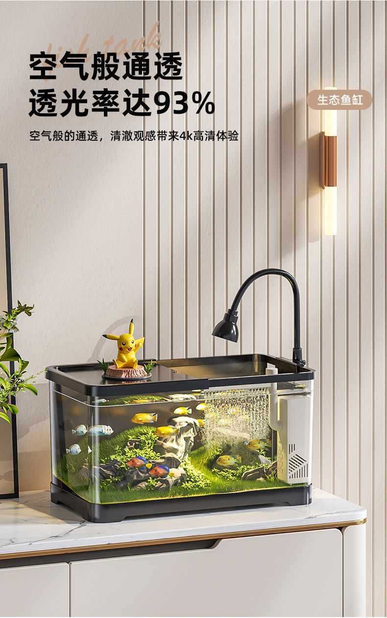 물고기 탱크 수족관 데스크탑 생태 금붕어 탱크 플라스틱 투명한 거실 풍경 중소 규모 게으른 물 변화 가정용 탱크스토어 가기
