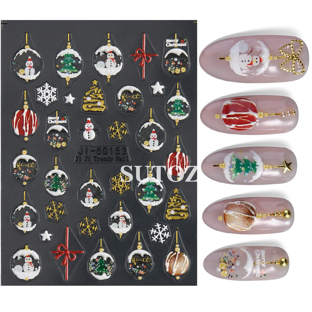 2024 크리스마스 새로운 5D 네일 아트 스티커 가을과 겨울 3 차원 양각 눈송이 크리스마스 트리 크리스마스 매달려 장식 다시 접착 스티커스토어 가기