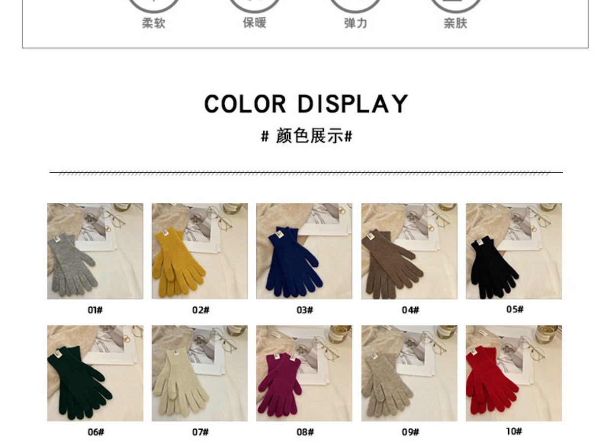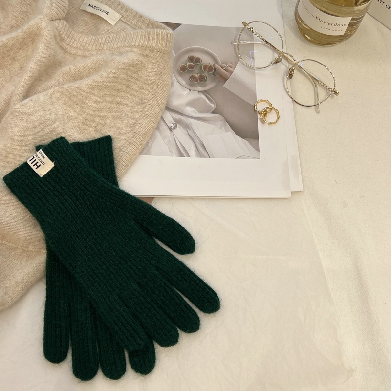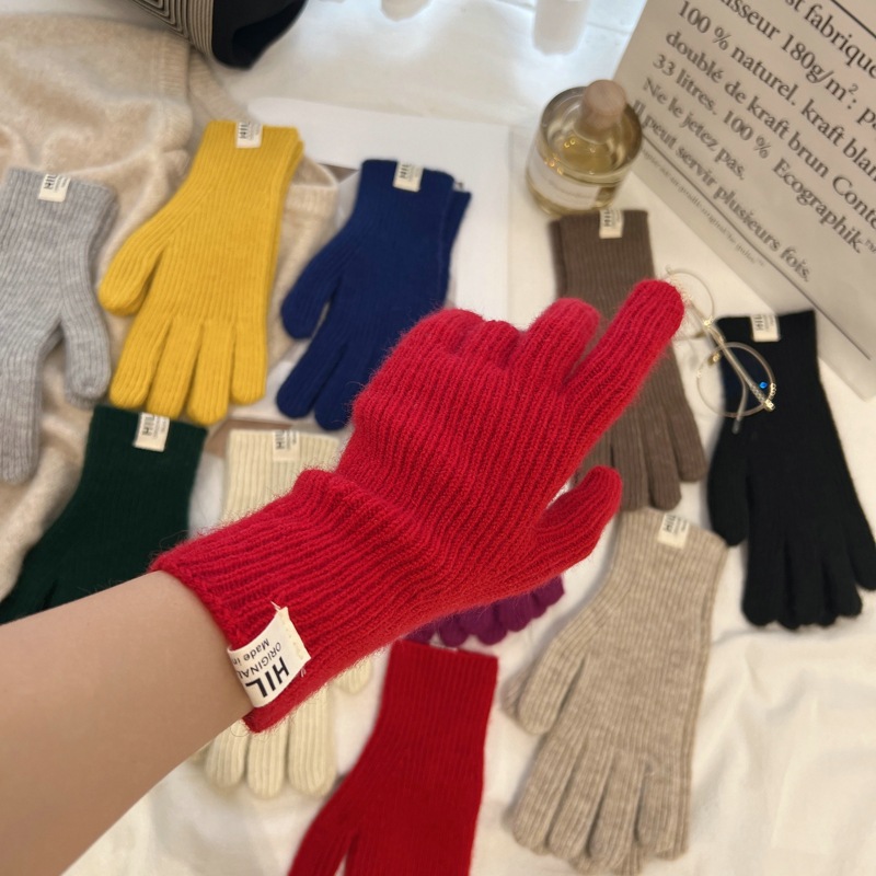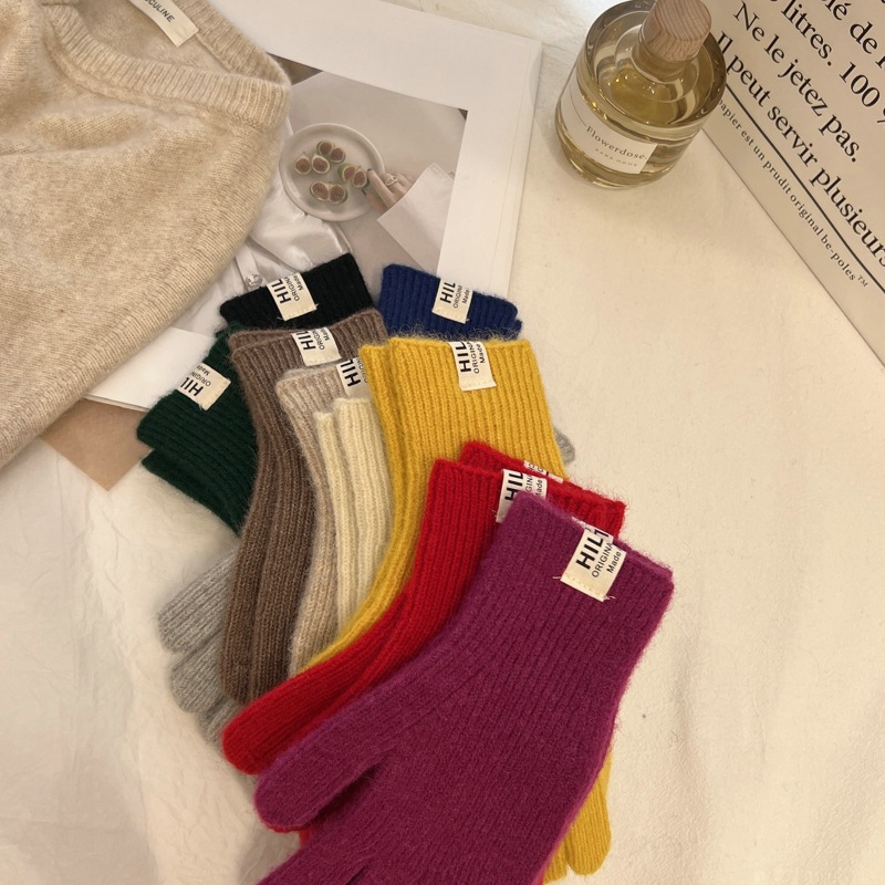 Pitaya 컬러 Ins 니트 울 장갑 간단한 가을 및 겨울 한국 스타일 라벨 손가락 터치 스크린 따뜻한 분할 손가락