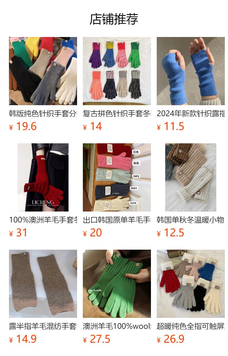 Pitaya 컬러 Ins 니트 울 장갑 간단한 가을 및 겨울 한국 스타일 라벨 손가락 터치 스크린 따뜻한 분할 손가락스토어 가기