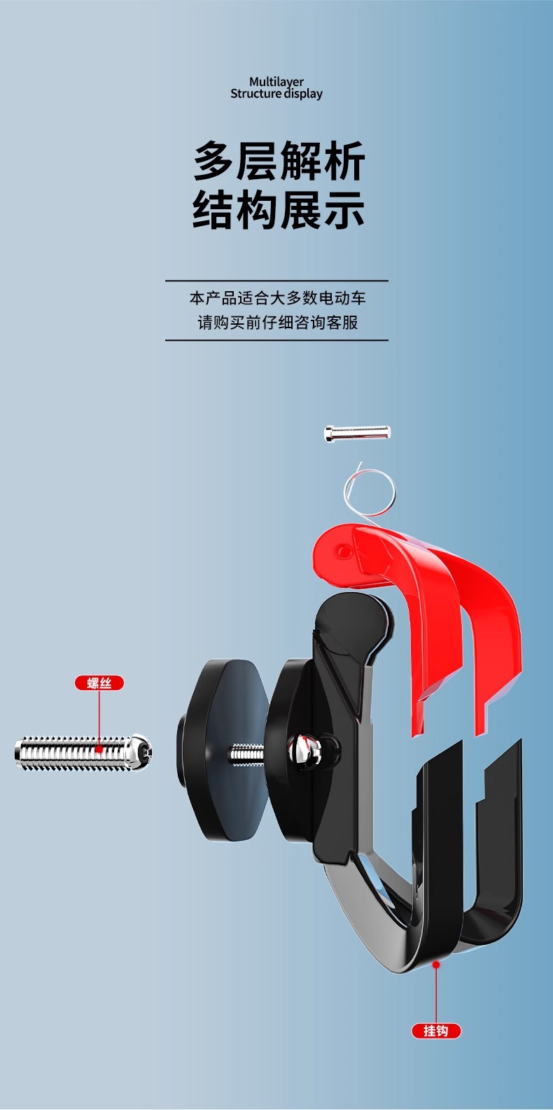 전기 자동차 후크 프론트 유니버설 후크 전기 자동차 후크 강력한 부하 베어링 범용 배터리 자전거 후크스토어 가기
