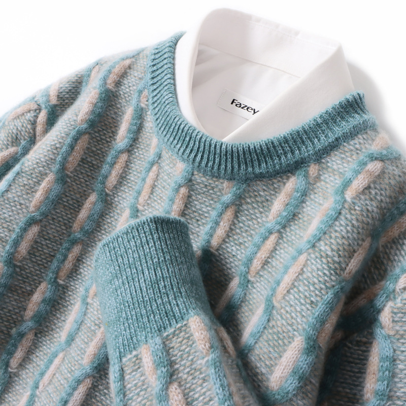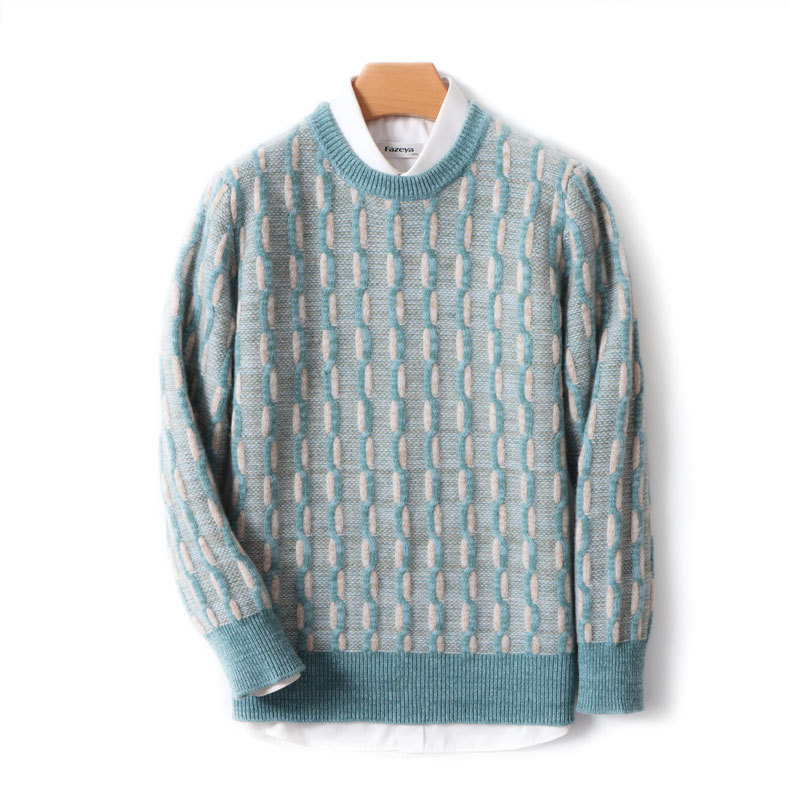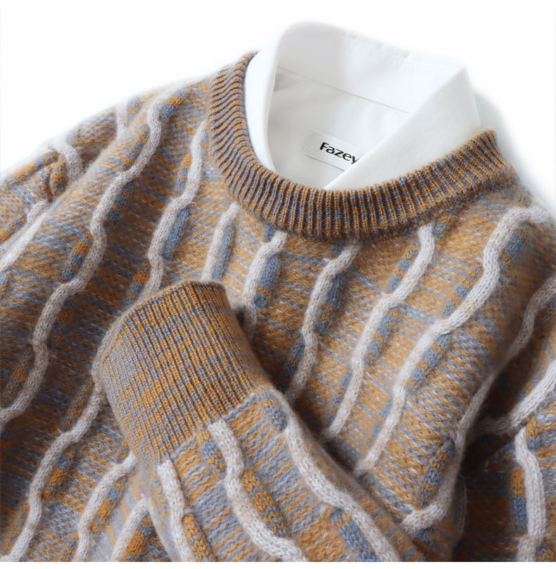 가을과 겨울 새로운 울 스웨터 남자 둥근 목 대비 두꺼운 스웨터 느슨한 캐주얼 100 스웨터 니트 베이스 셔츠스토어 가기