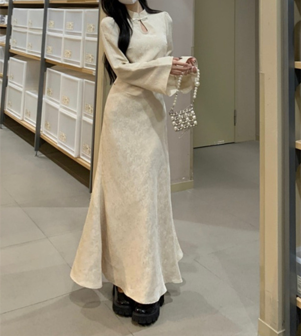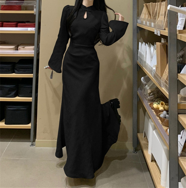 새로운 스타일의 치파오 원피스 여성 봄 가을 신상 프렌치 헤본 스타일 플러스 사이즈 허리 슬림 롱 드레스스토어 가기