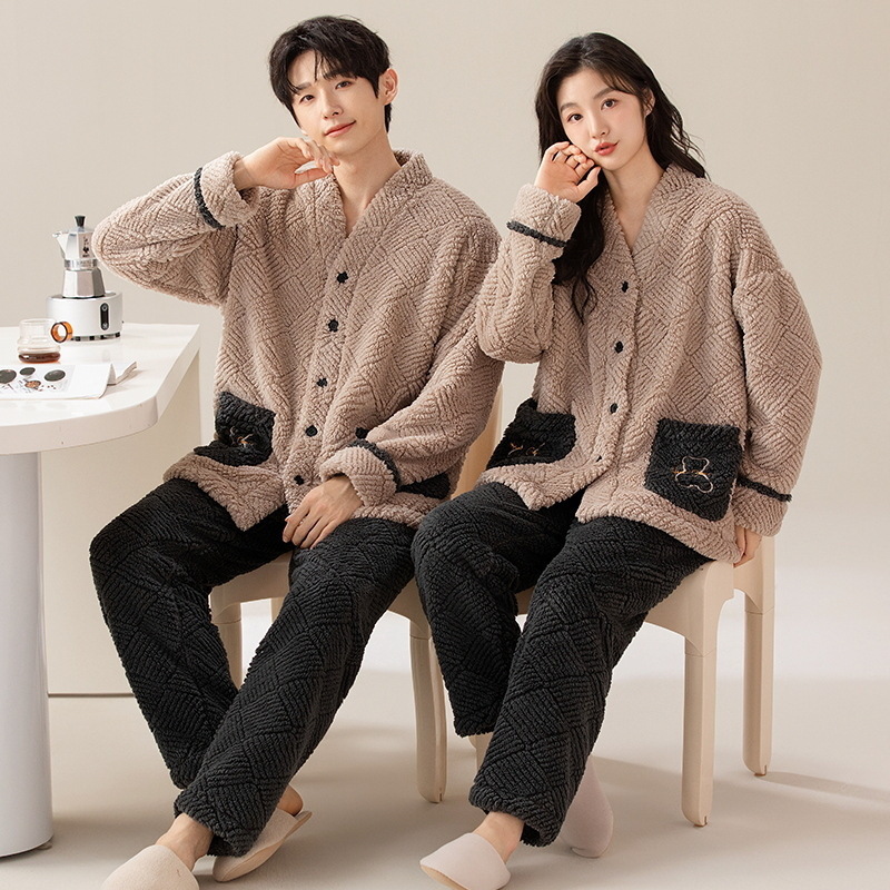플란넬 커플 잠옷 가을과 겨울 두꺼운 따뜻한 산호 양털 여성 만화 겨울 남자 홈 의류 세트스토어 가기