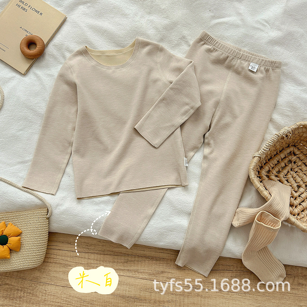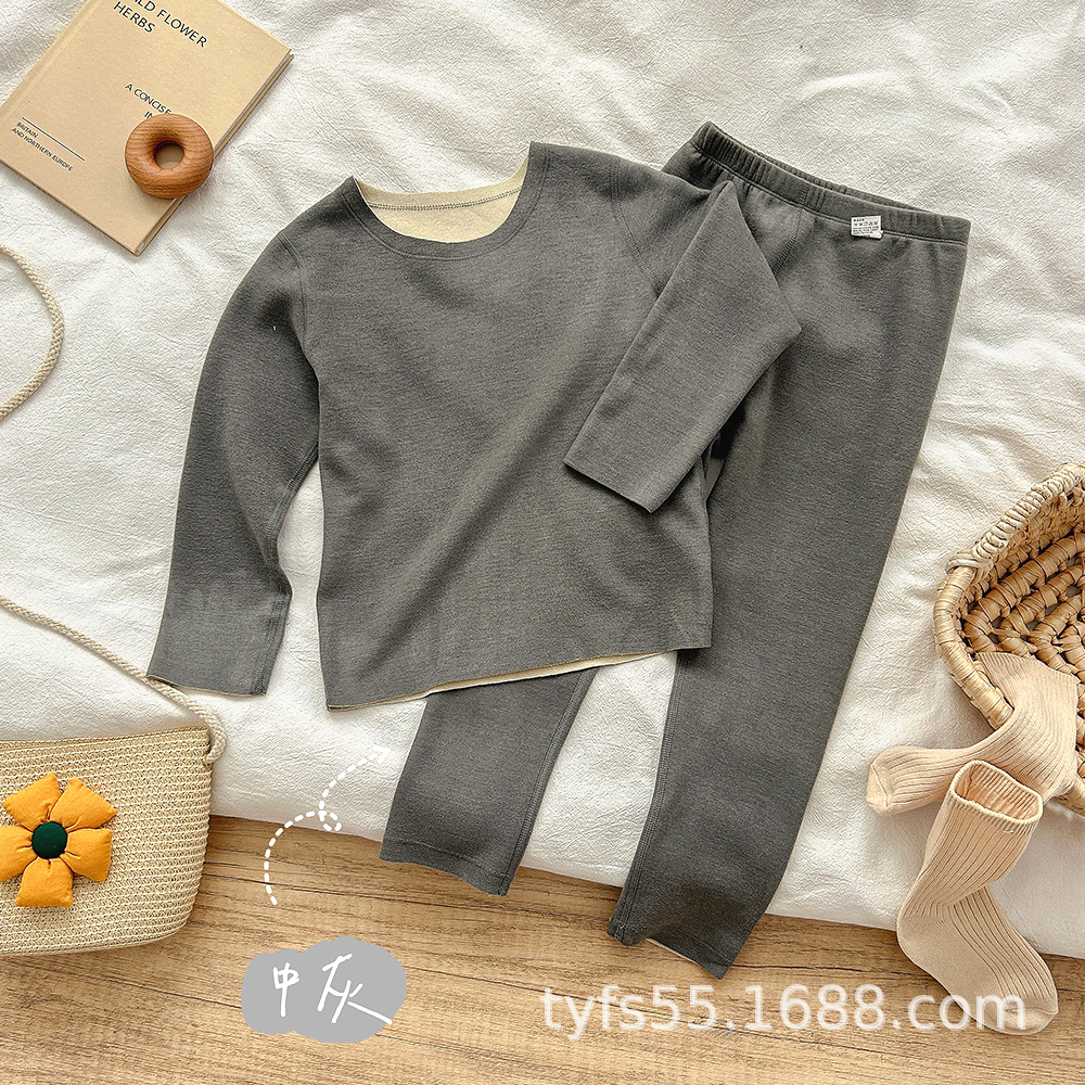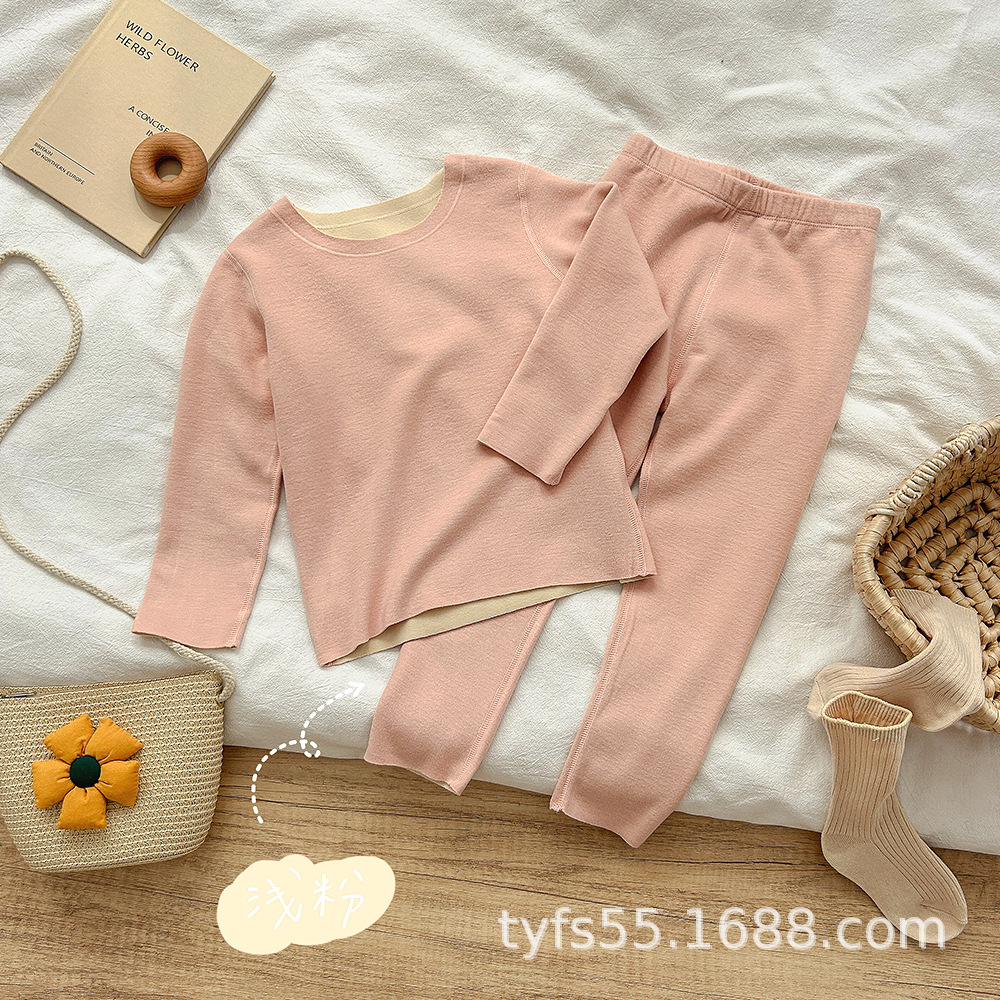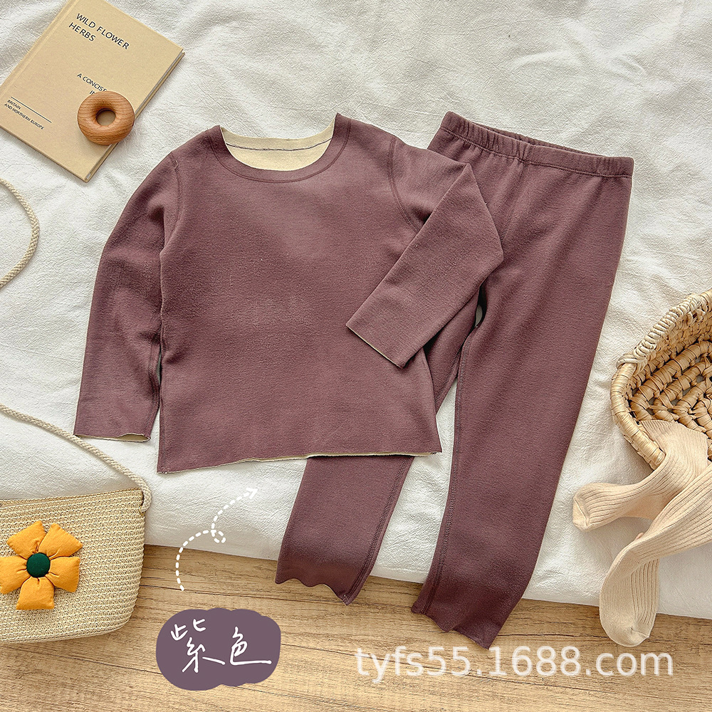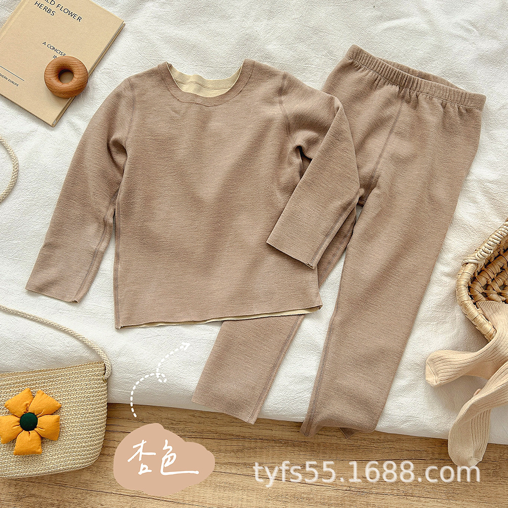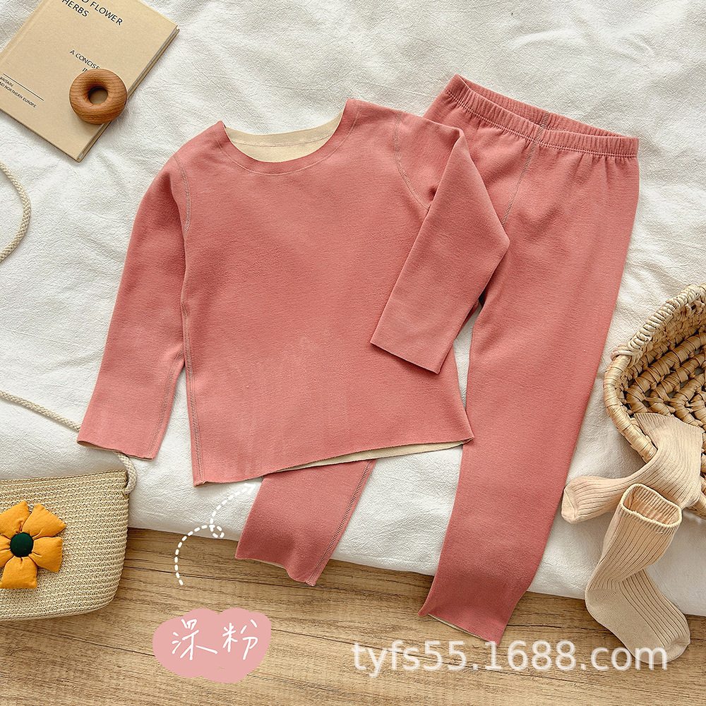 掌柜说:秋冬季儿童保暖内衣套装男童女童德绒AB面纯色秋衣秋裤家居服套装