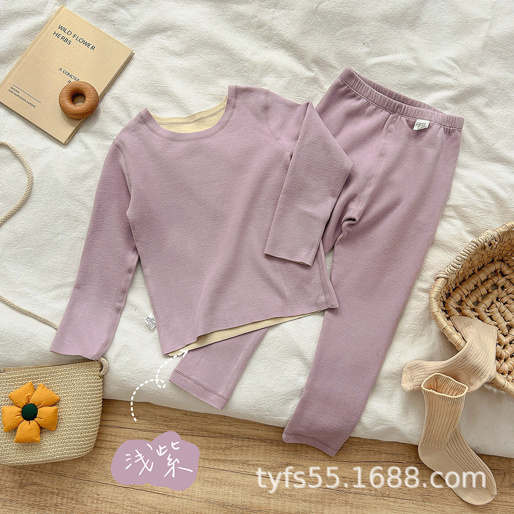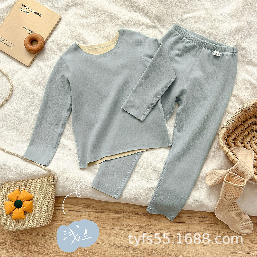 가을과 겨울 어린이 열 속옷 세트 소년 소녀 드 벨벳 AB 표면 단색 가을 의류 가을 바지 홈 의류 세트스토어 가기