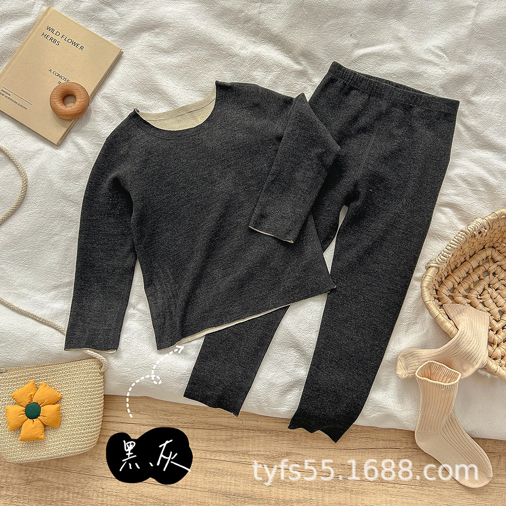 가을과 겨울 어린이 열 속옷 세트 소년 소녀 드 벨벳 AB 표면 단색 가을 의류 가을 바지 홈 의류 세트