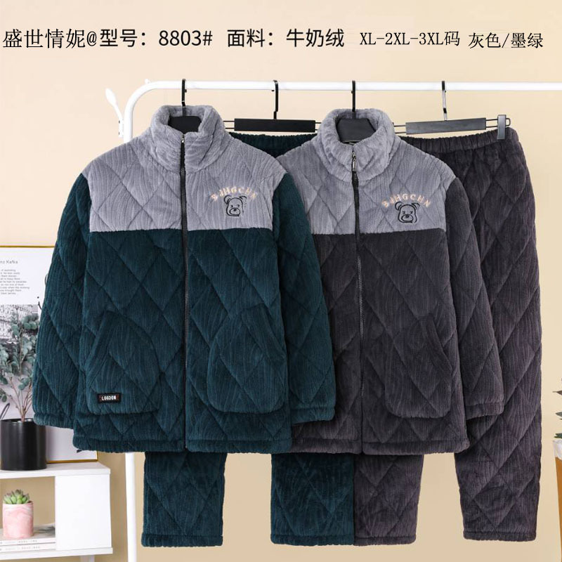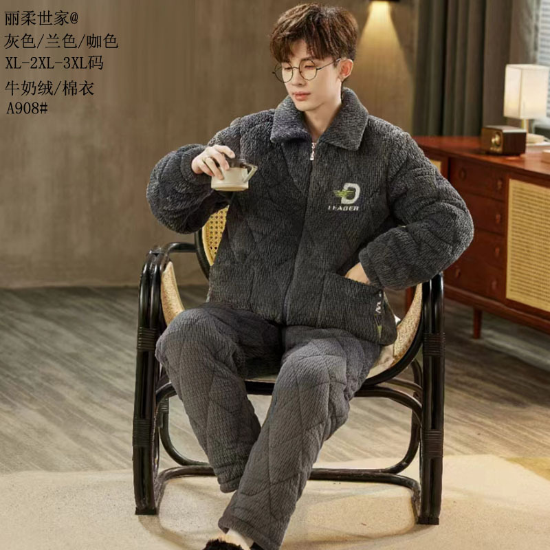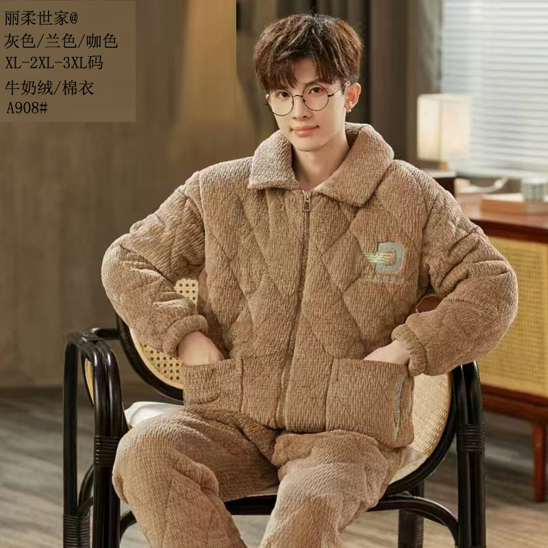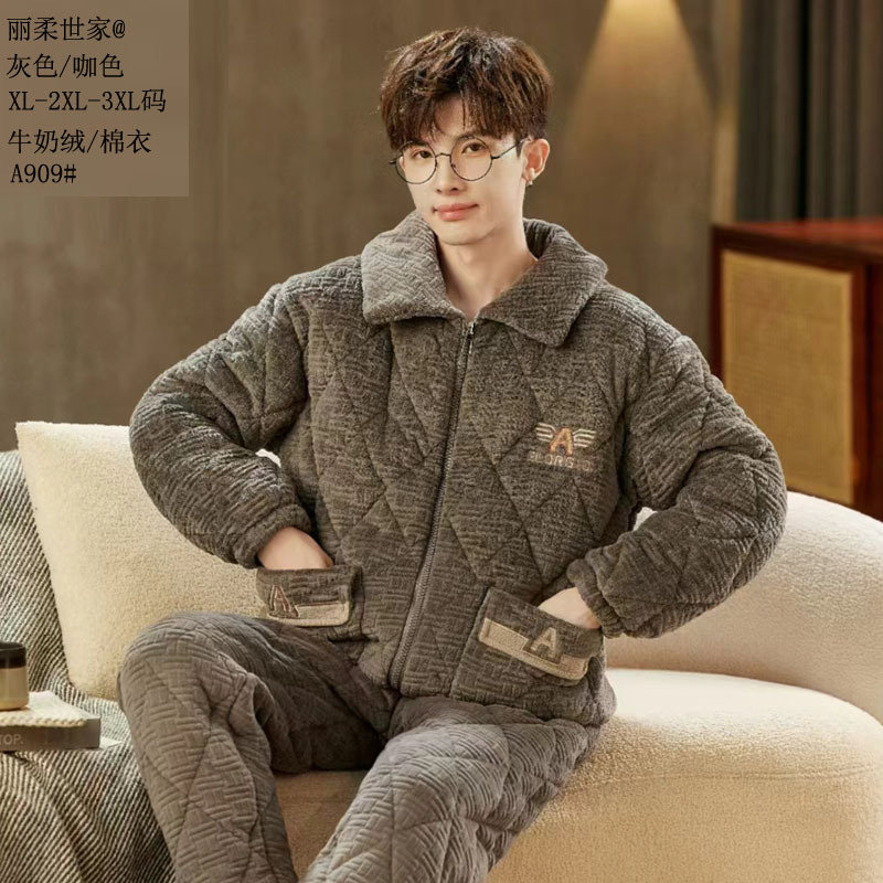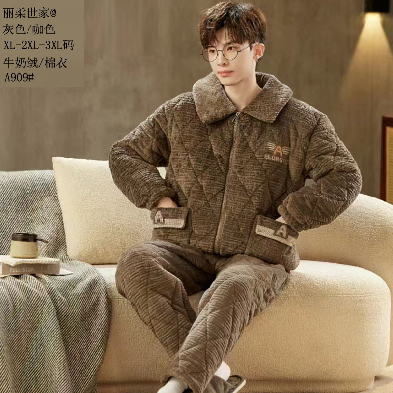 따뜻한 벨벳 남성용 면옷, 세시링니 패션 25 신상 누빔 밀크벨벳 보온 아우터 지퍼 홈웨어