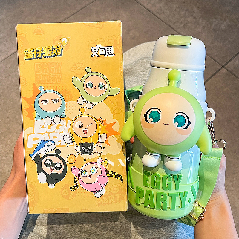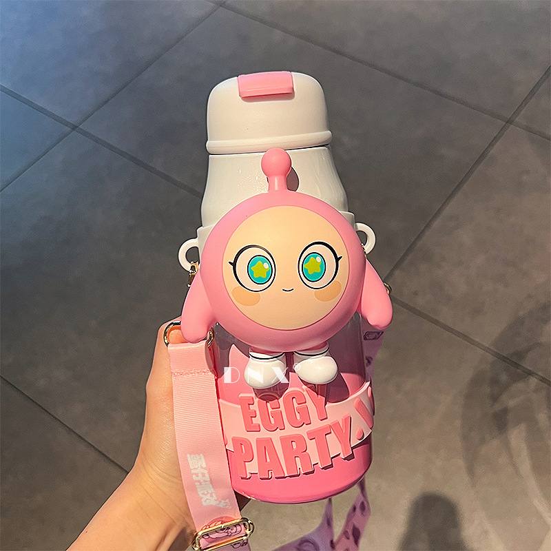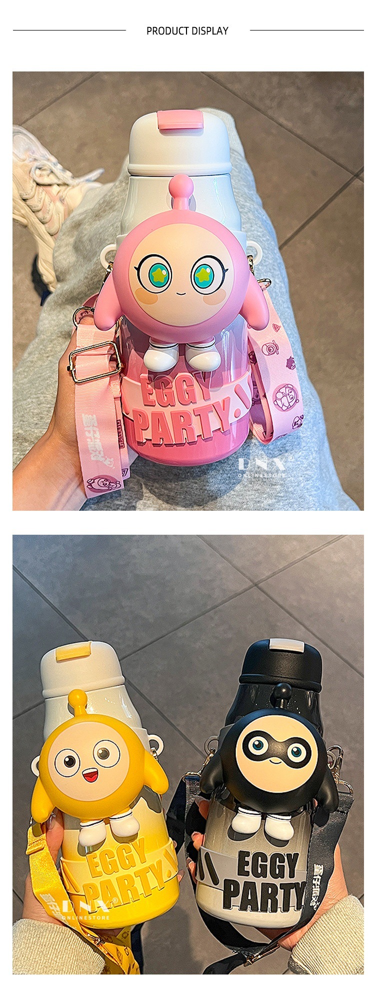 새로운 스타일의 계란 파티 어린이 보온병 컵 학교 음식 학년 316 밀짚 컵 귀여운 학생 큰 배 물 컵