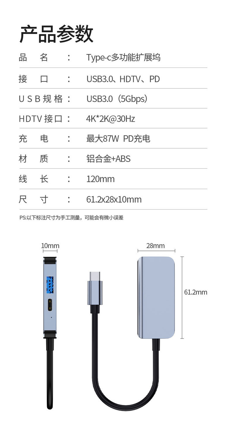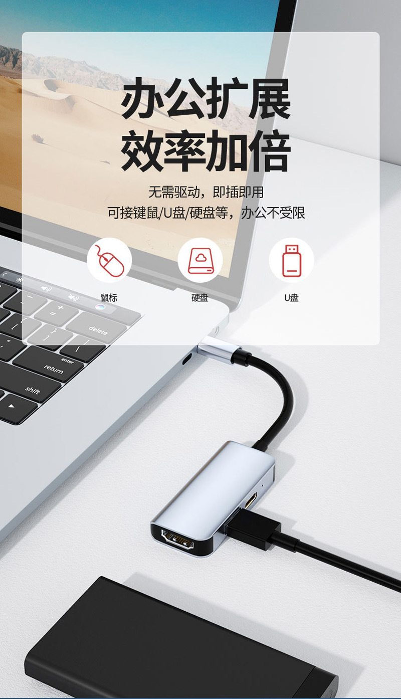 - 注意:此适配器主要用于电脑或笔记本电脑!如果您想与手机一起使用,请确保您的手机是 Type-c 3.0 或更高版本,并支持 MHL 以使用屏幕投影 HDMI。