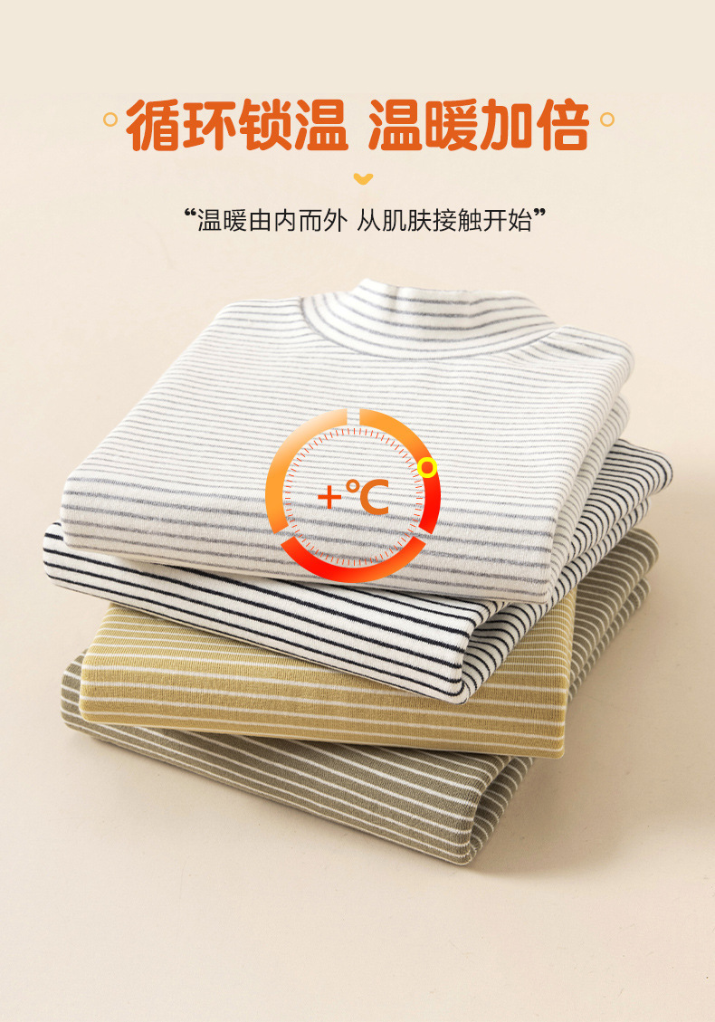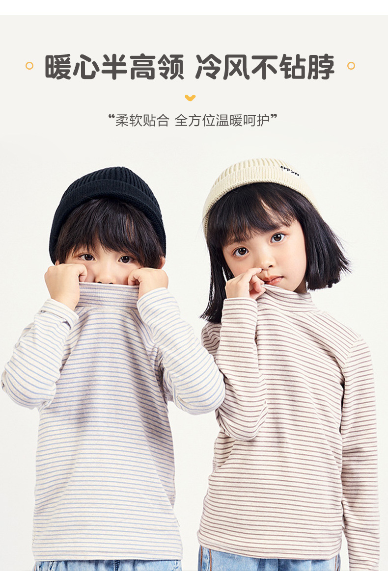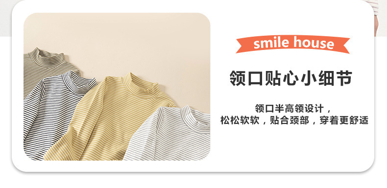 가을과 겨울 새로운 어린이 반 높이 칼라베이스 셔츠 스트라이프 외국식 따뜻한 유지 긴팔 탑 티셔츠 소년 소녀 용스토어 가기