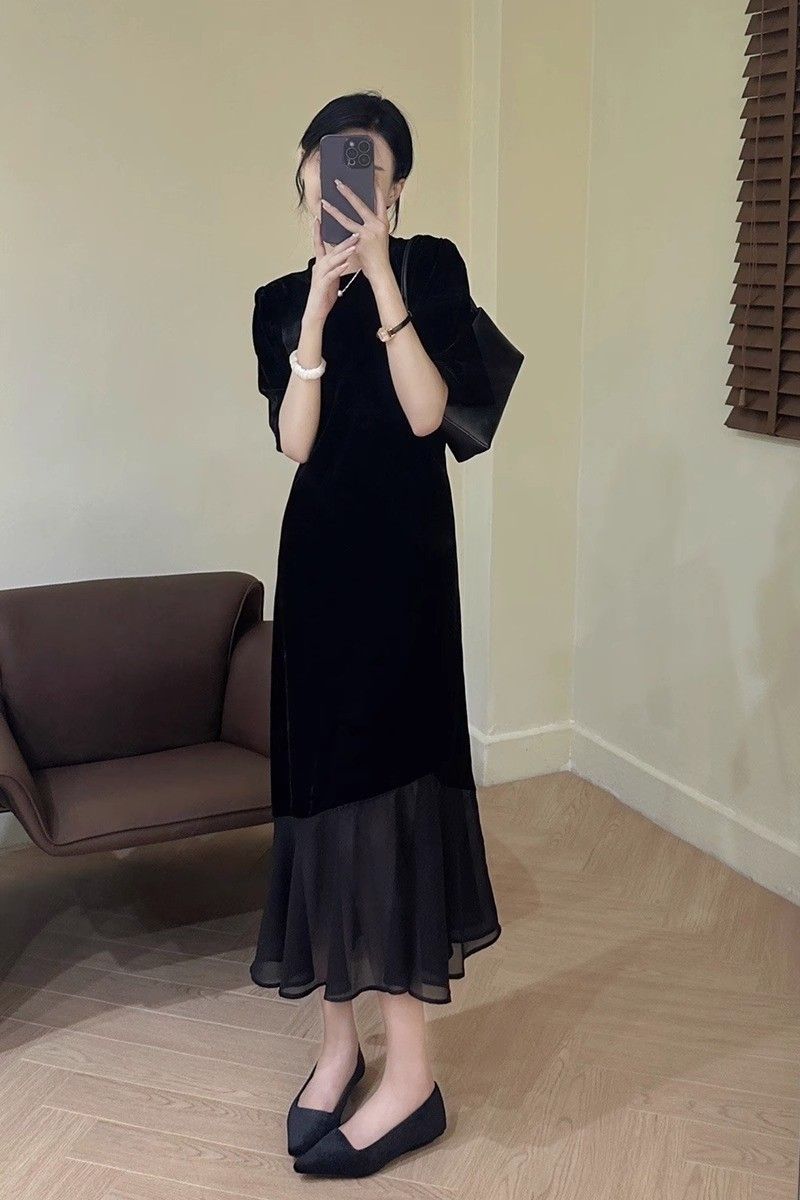 우아한 여성 원피스 2025 가을 신상 블랙 스커트 가을룩 리틀 블랙 드레스 초가을 롱 드레스스토어 가기