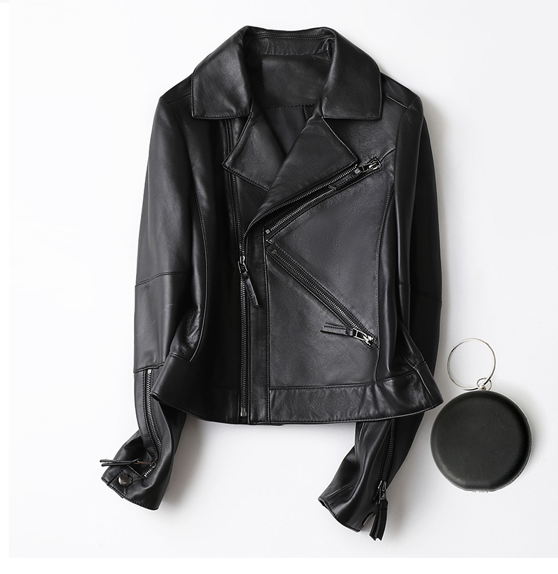 봄과 가을 정품 가죽 여성 혐오 양가죽 바이커 세트 슬림 핏 짧은 작은 가죽 자켓 새 재킷