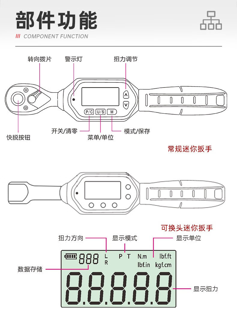 Peric BAWM 미니 디지털 토크 렌치 고정밀 조정 가능한 조립식 테스트 자동 수리 수리 래칫 도구