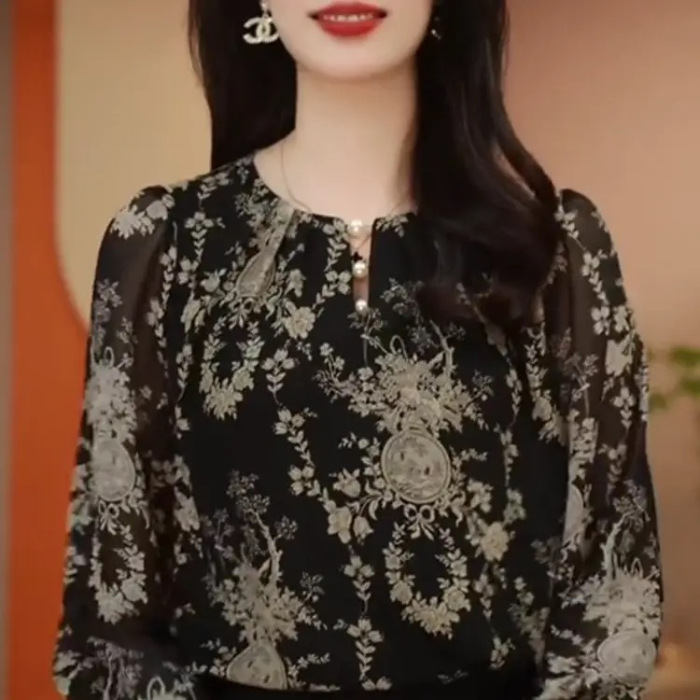 쉬폰 긴 소매 셔츠 2024 새로운 도착 인쇄 작은 셔츠 패션 세련된 슬림 꽃 느슨한 셔츠 우아한스토어 가기