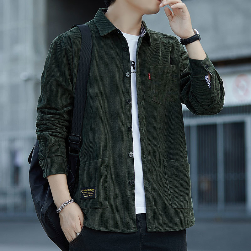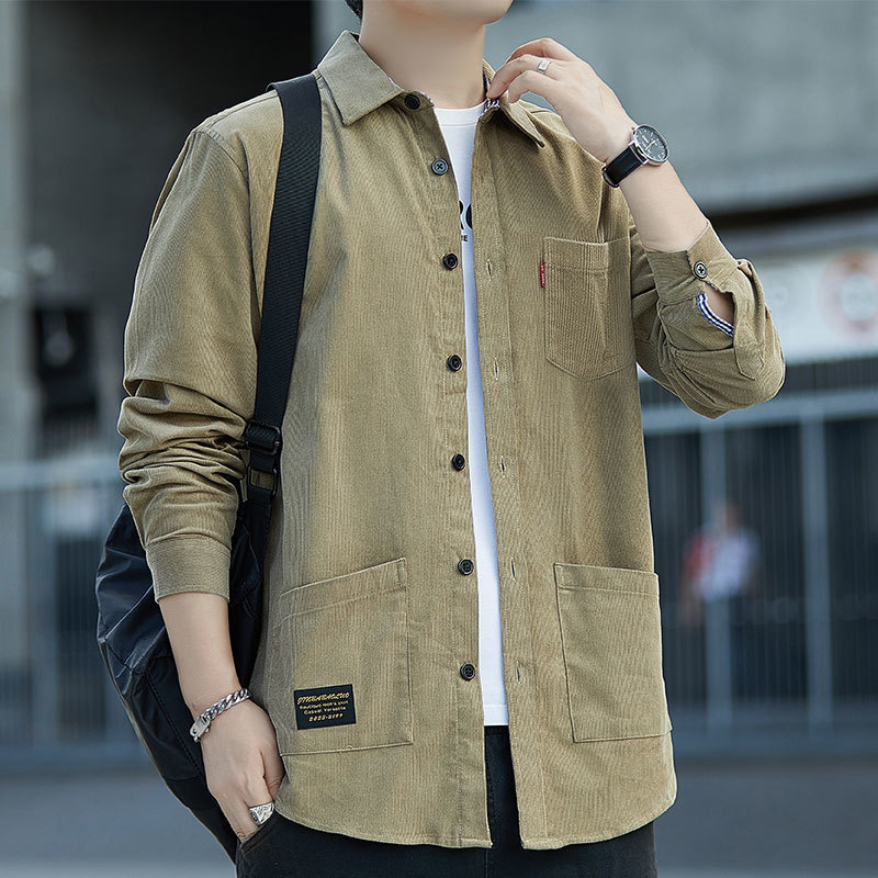 가을과 겨울 새 기모 두꺼운 긴 소매 셔츠 병아리 케이지 남성용 따뜻한 셔츠 멀티 포켓 캐주얼 작업복 셔츠스토어 가기