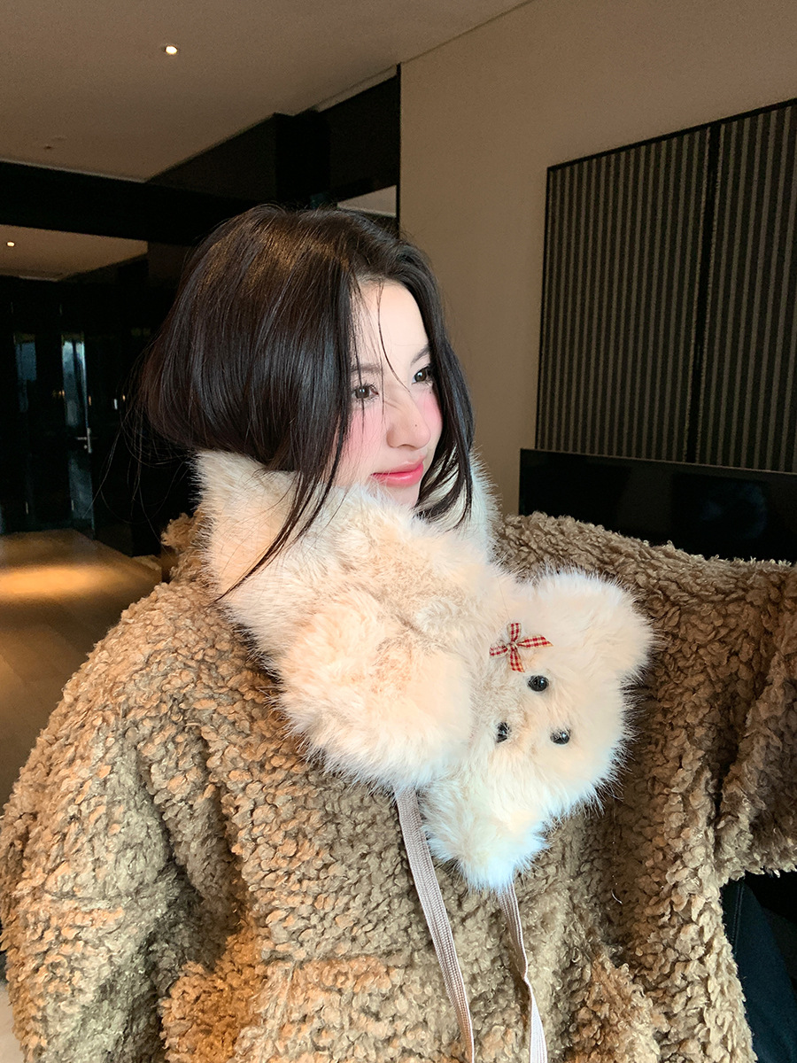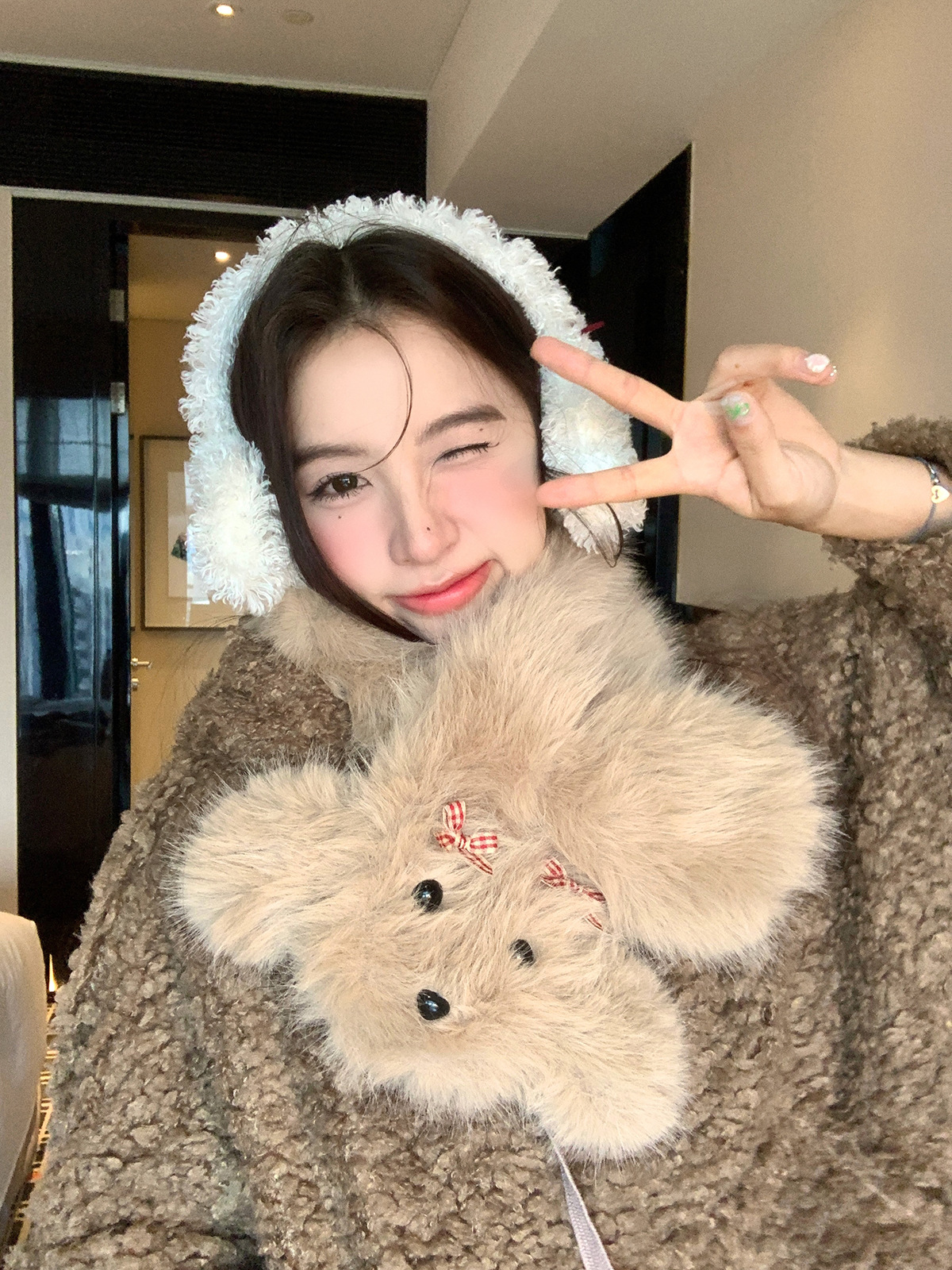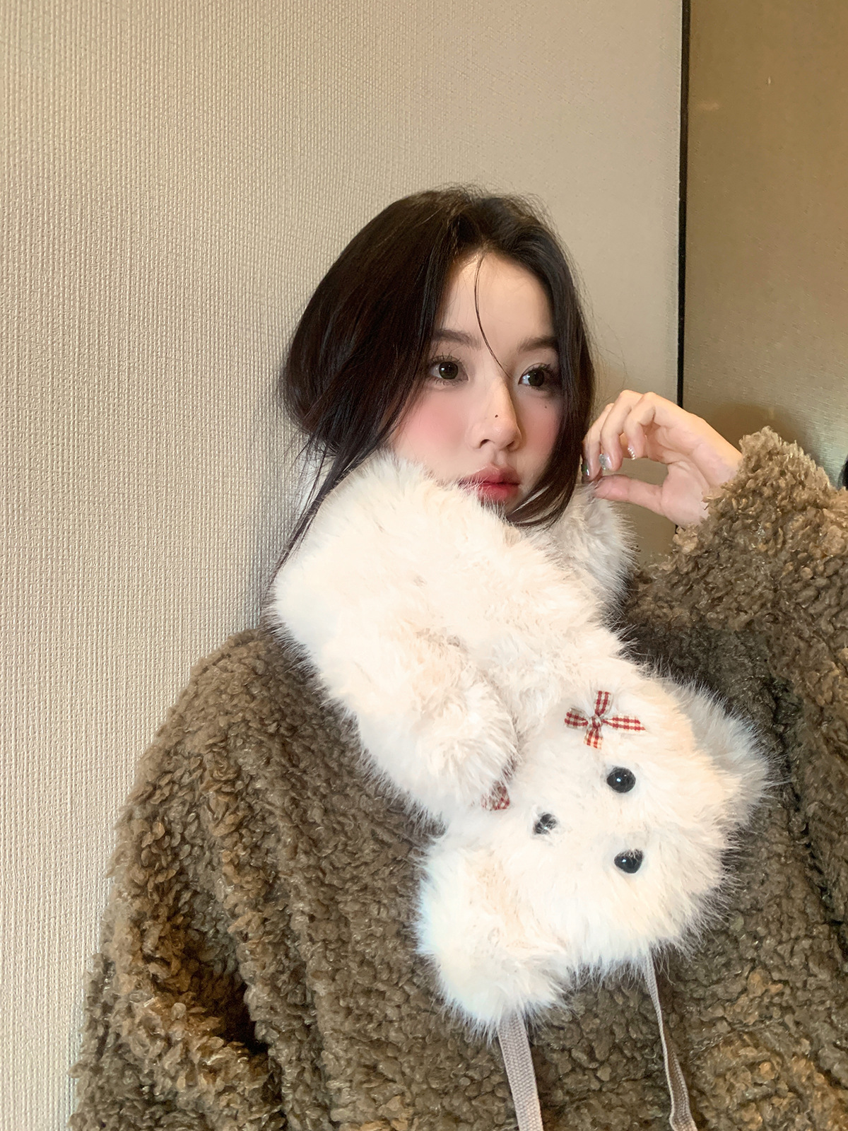 2024 새로운 스타일의 분위기 귀여운 강아지 봉제 니트 스카프 여성의 가을과 겨울 학생 따뜻한 올 매치 스카프 패션스토어 가기