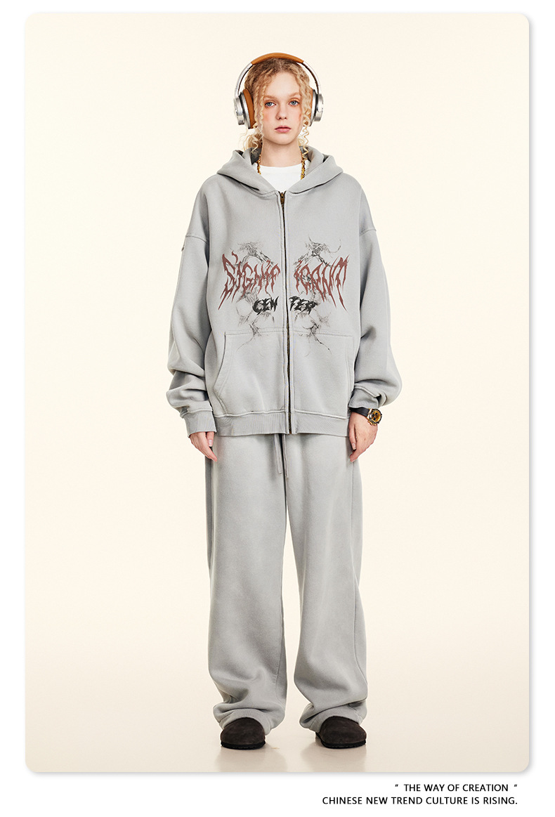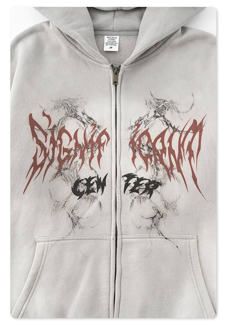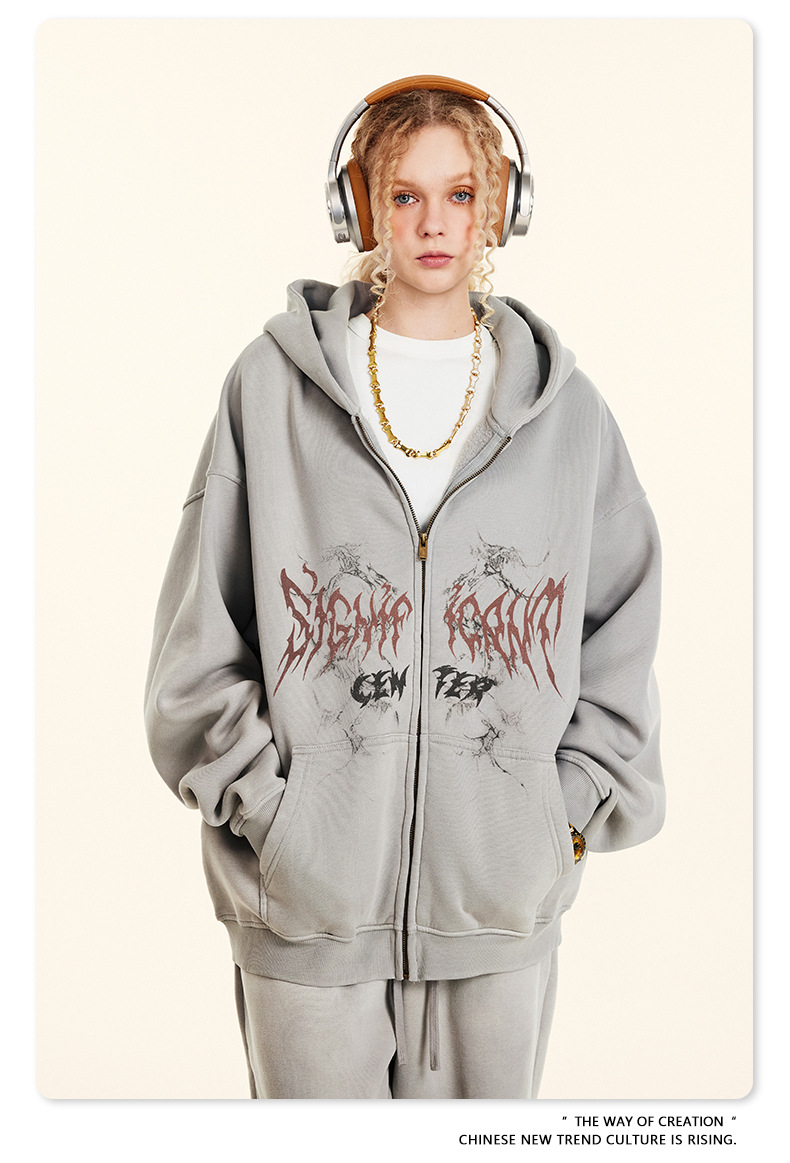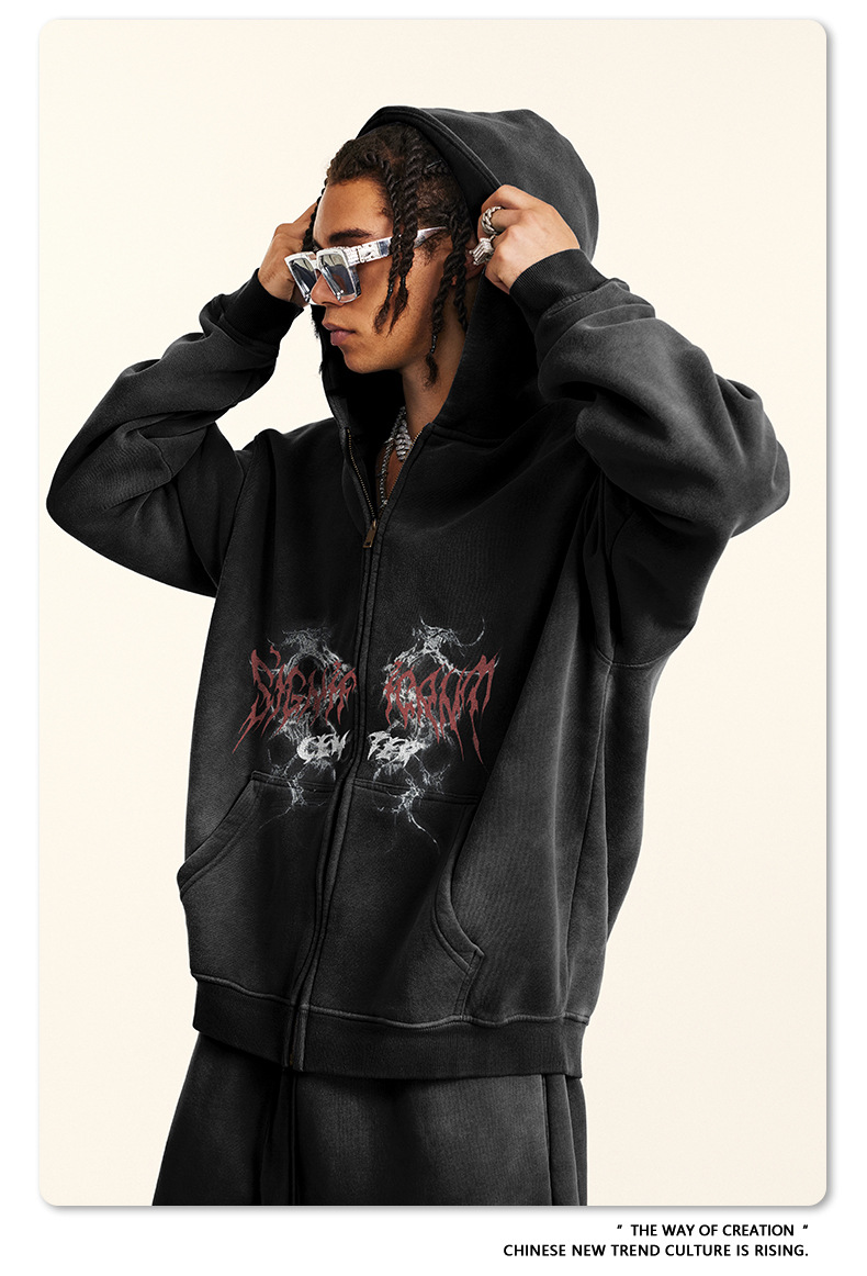 남성복 | 가을 2025 년 미국 조수 브랜드 고딕 스타일 지퍼 후드웨어 오버 사이즈 카디건 재킷 남성