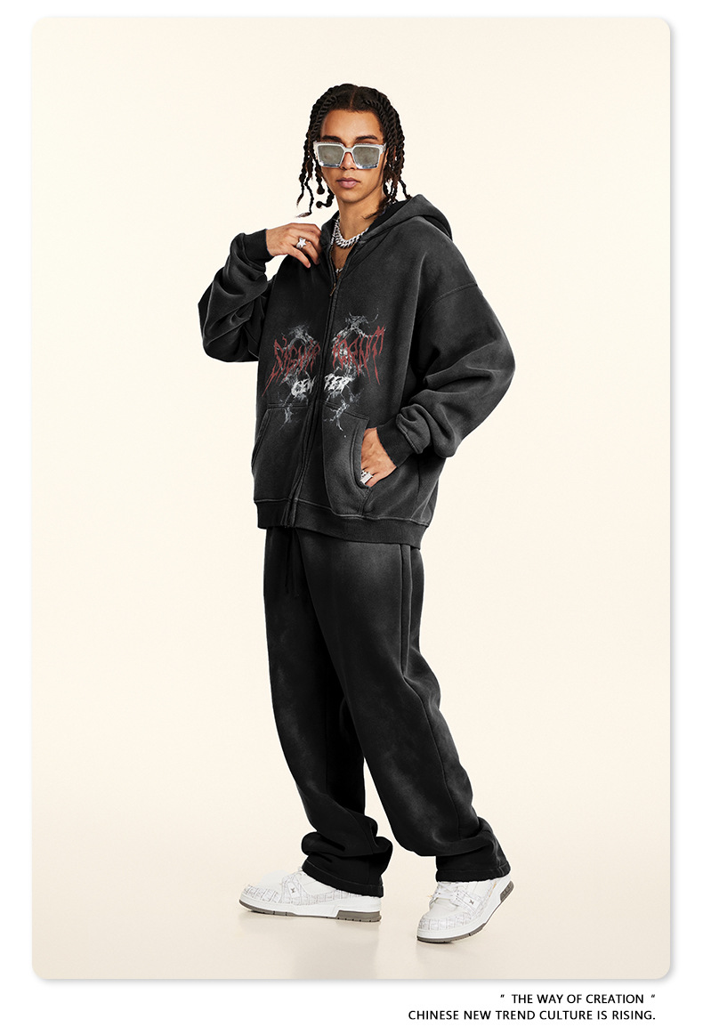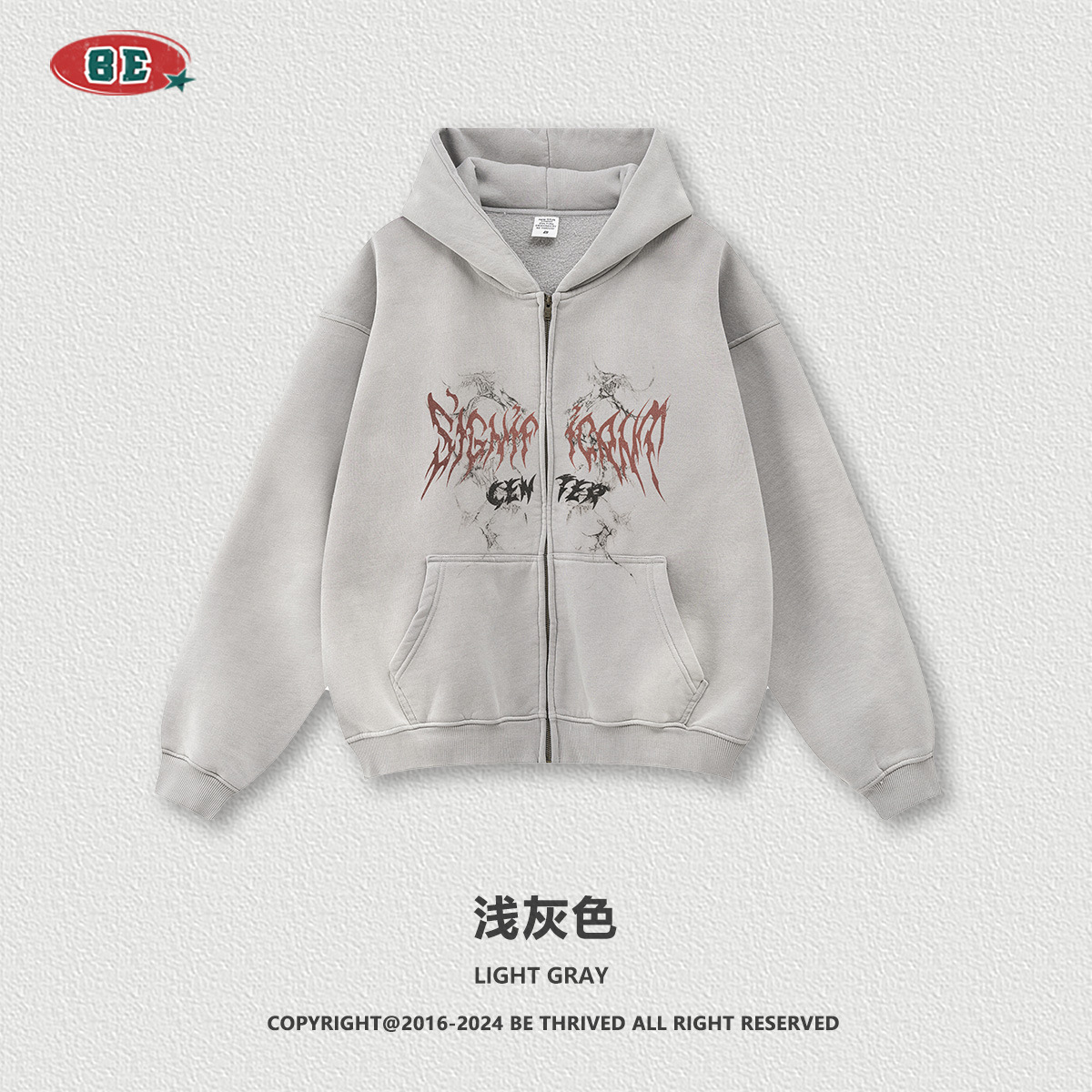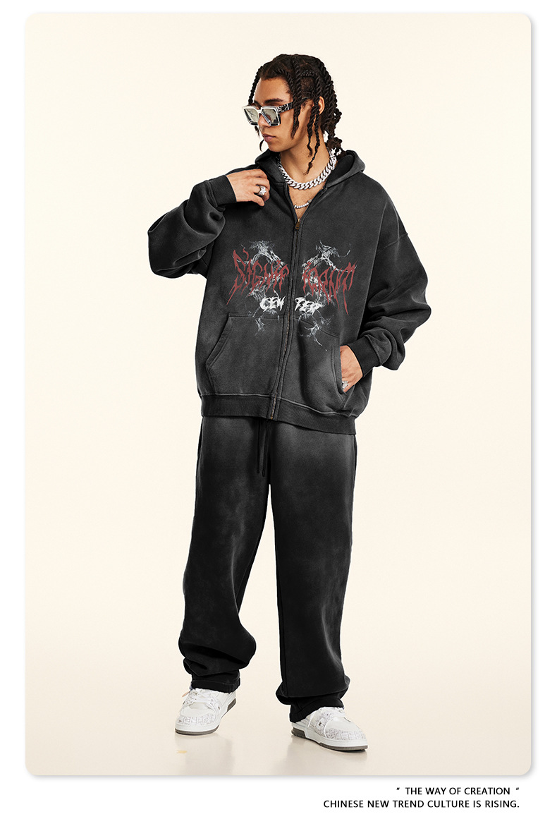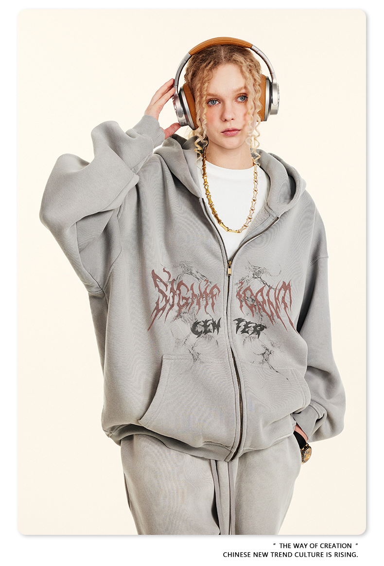 남성복 | 가을 2025 년 미국 조수 브랜드 고딕 스타일 지퍼 후드웨어 오버 사이즈 카디건 재킷 남성스토어 가기