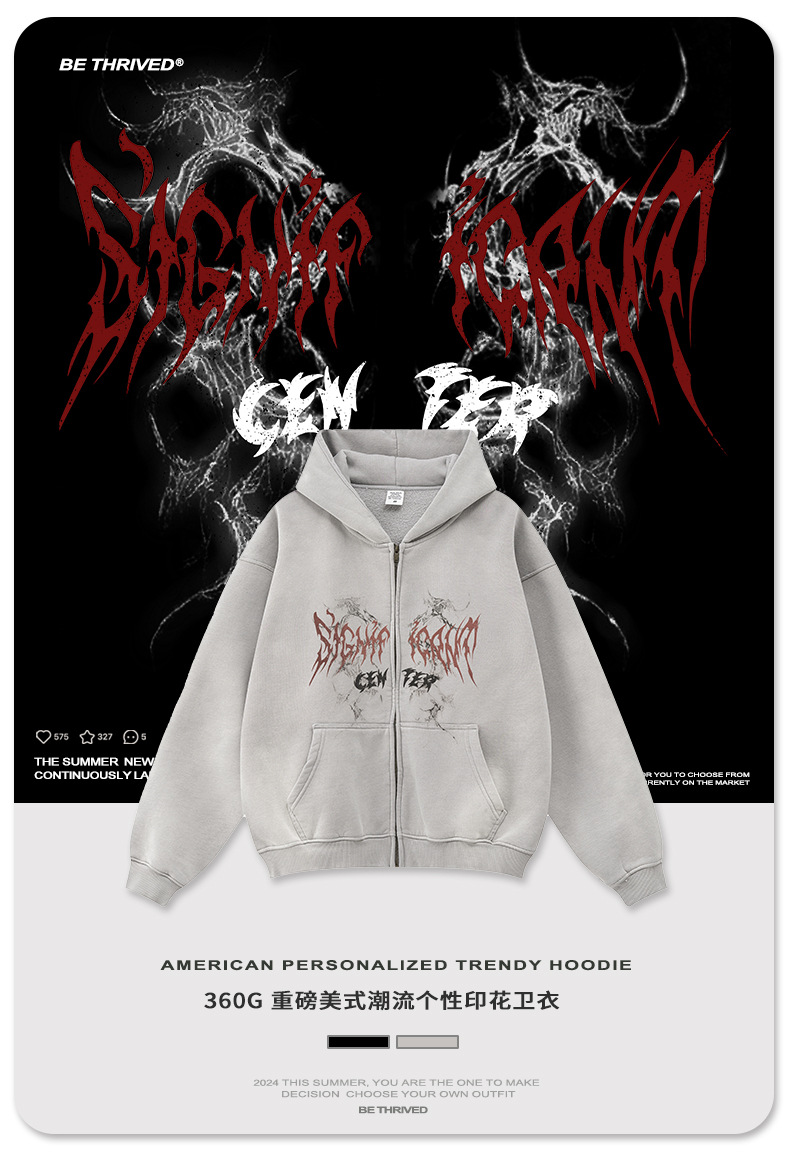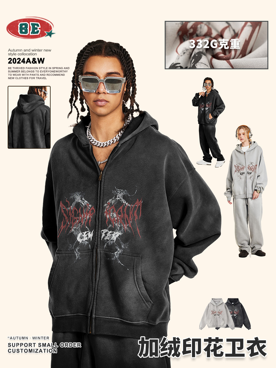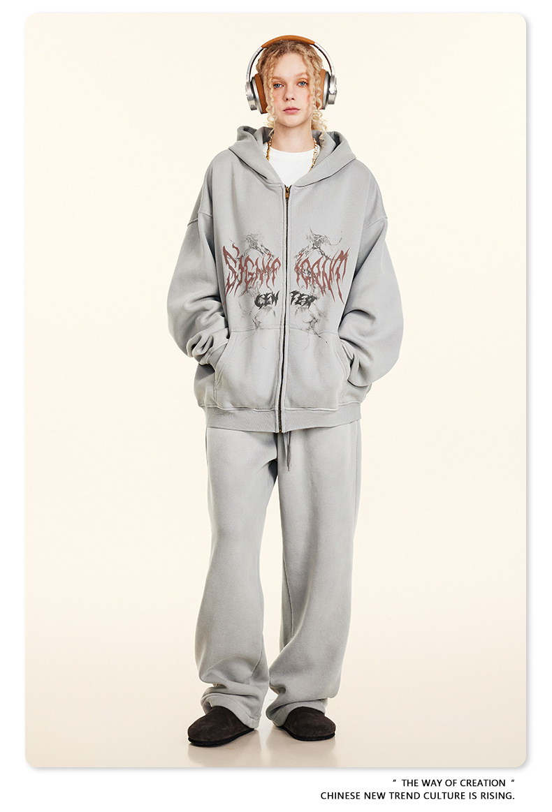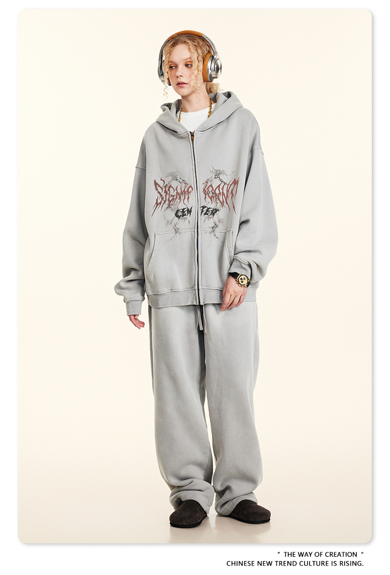 남성복 | 가을 2025 년 미국 조수 브랜드 고딕 스타일 지퍼 후드웨어 오버 사이즈 카디건 재킷 남성스토어 가기
