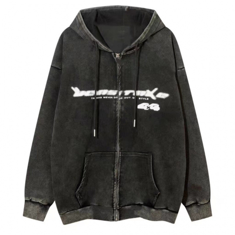 아메리칸 스타일 하이 스트리트 카디건 스웨터 남성과 여성의 빈티지 세련된 골동품 기하학적 구조 느슨한 기모 후드 지퍼 재킷스토어 가기