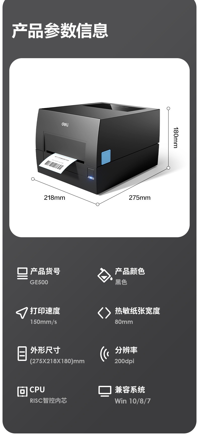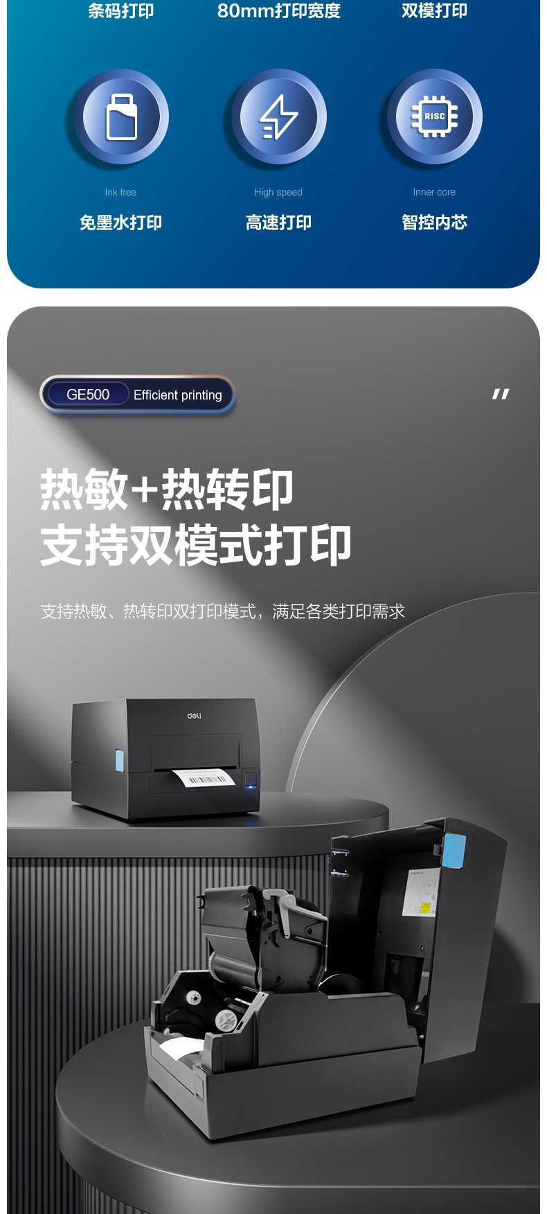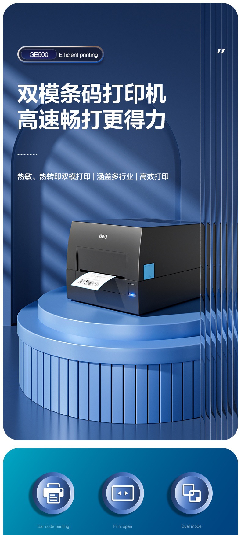 델리 GE500 바코드 라벨 고화질 열 전송 지능형 고속 프린터 물류 서비스 소매 업체 슈퍼