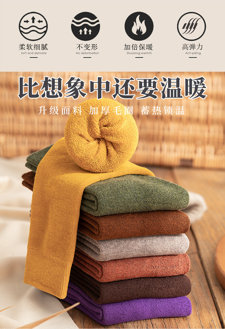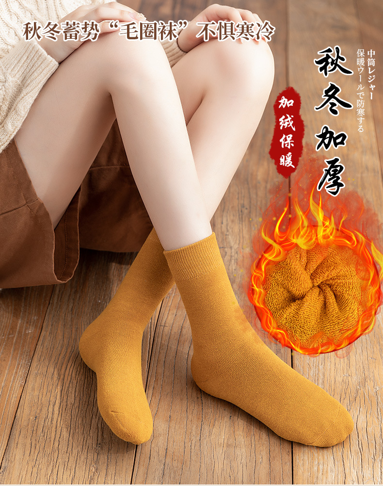 양말 여성의 가을과 겨울 두꺼운 기모 배럴 중간 이끼 양말 여성의 단색 겨울 두꺼운 수건 양말 캐주얼 여성용 양말스토어 가기
